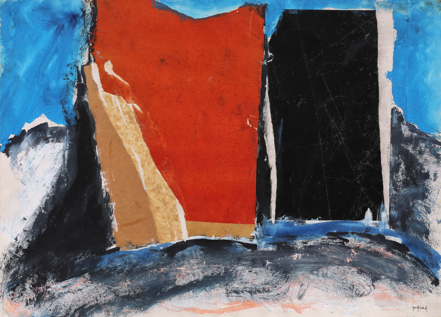 guașă, acuarelă și colaj pe hârtie lipită pe carton
