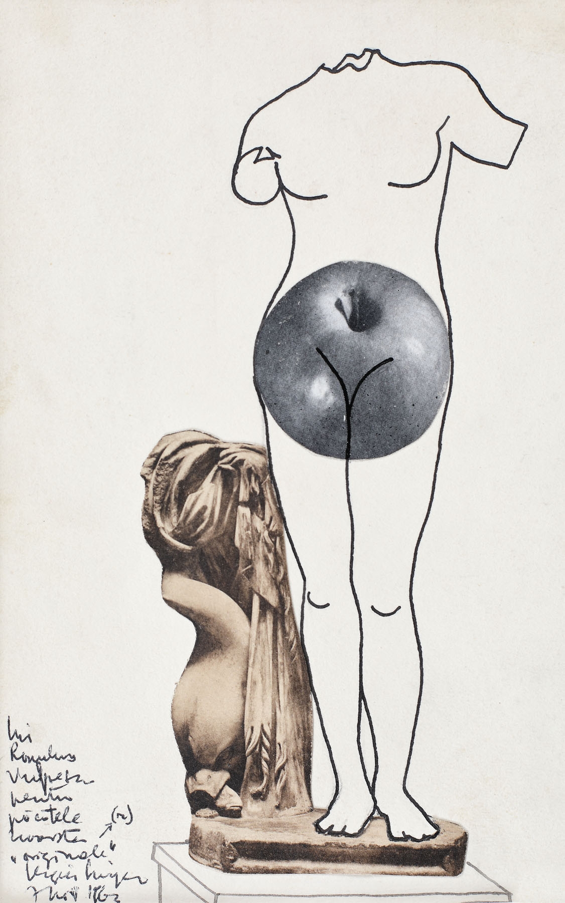 tuș și colaj pe hârtie lipită pe carton