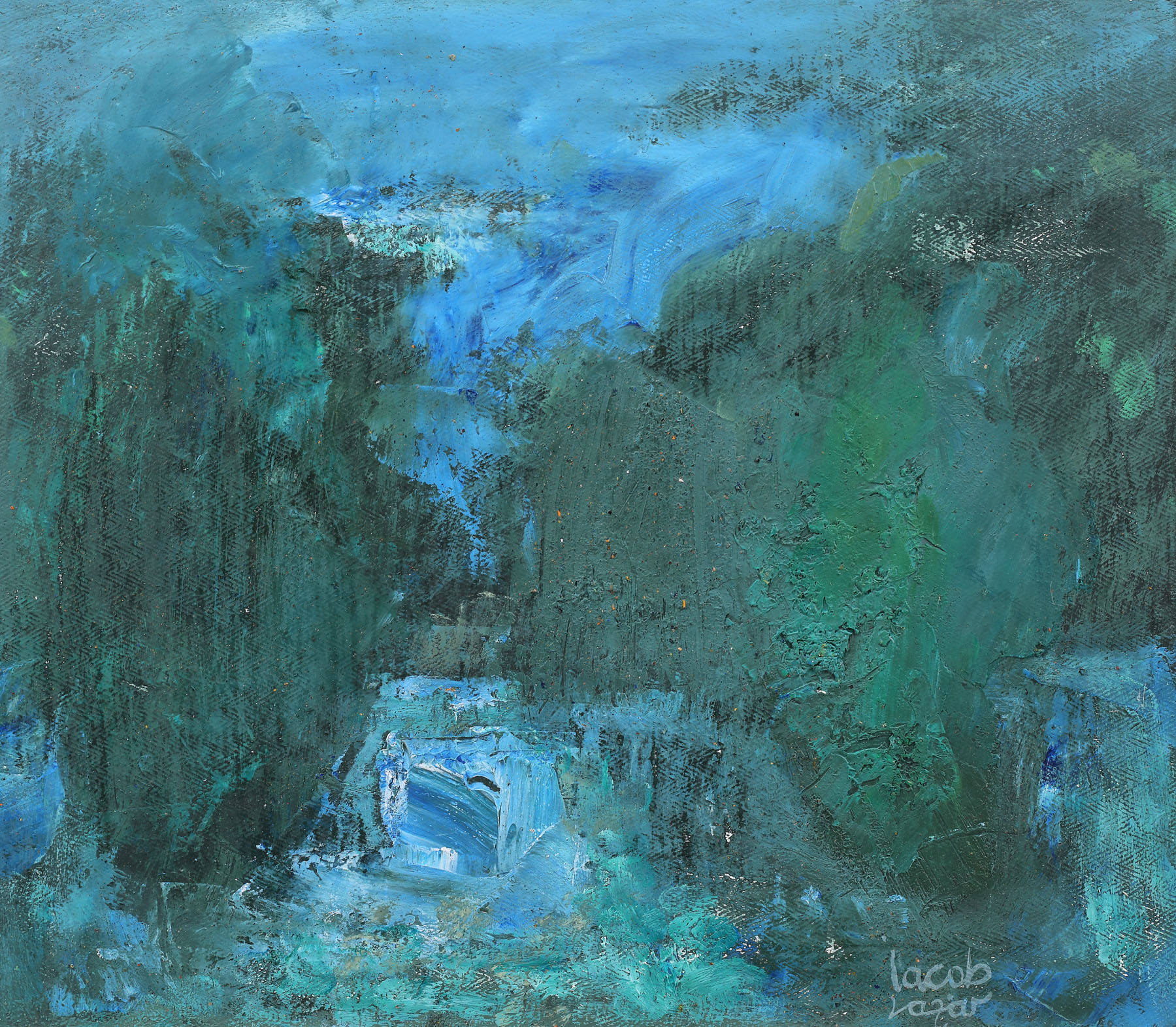 semnat dreapta jos, cu galben, "Iacob Lazăr"; semnat și intitulat pe verso, cu albastru, "Iacob Lazăr, Zăvoi"