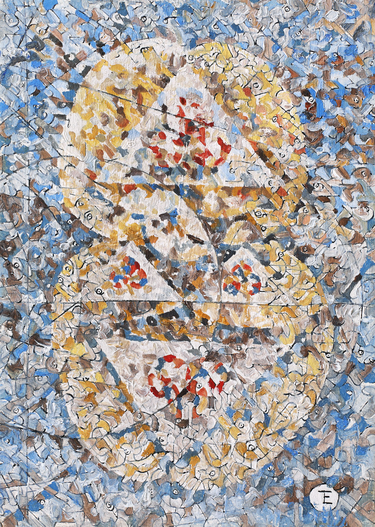 semnat dreapta jos, cu negru, în monogramă, "ET"