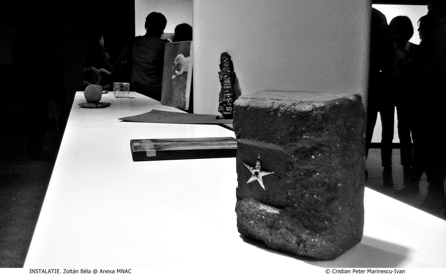 Lucrarea curentă a făcut parte din expoziția personală “Instalație”, curatoriată de Adriana Oprea. Desi cunoscut preponderent ca pictor, expoziția a dovedit polivalența artistului Zoltán Béla, capacitatea sa de a lucra în tehnici și medii diferite, de a se disloca de tehnica tradițională. Personificarea obiectelor expuse, care provin dintr-un univers funcțional, real, cotidian, s-a realizat prin plasarea lor într-un context arhitectural ce le-a redus la rolul de simbol. Semnătura ideologică a acestor obiecte, purificată prin decontextualizarea lor, a fost accentuată de absența voită a titlurilor la o parte din piese, antrenând capacitatea de deducție a privitorului, pentru a înțelege rolul și utilitatea acestora. Conform unui interviu acordat lui Gergo Horvath, artistul mărturisea: “Autenticitatea materialelor folosite la realizarea lucrărilor este crucială; pentru mine, materialul are memorie. Astfel, textura, patina timpului dar și materialul în sine scot în evidență creativitatea artistică.” (I.S.)