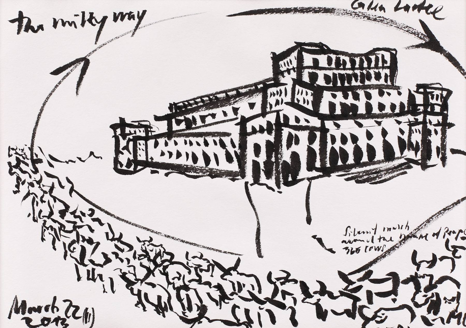 semnat dreapta jos, cu negru, "MC"; datat stânga jos, cu negru, "March 22 2013"; intitulat stânga, respectiv dreapta sus, cu negru, "The Milky Way, Calea Lactee"
