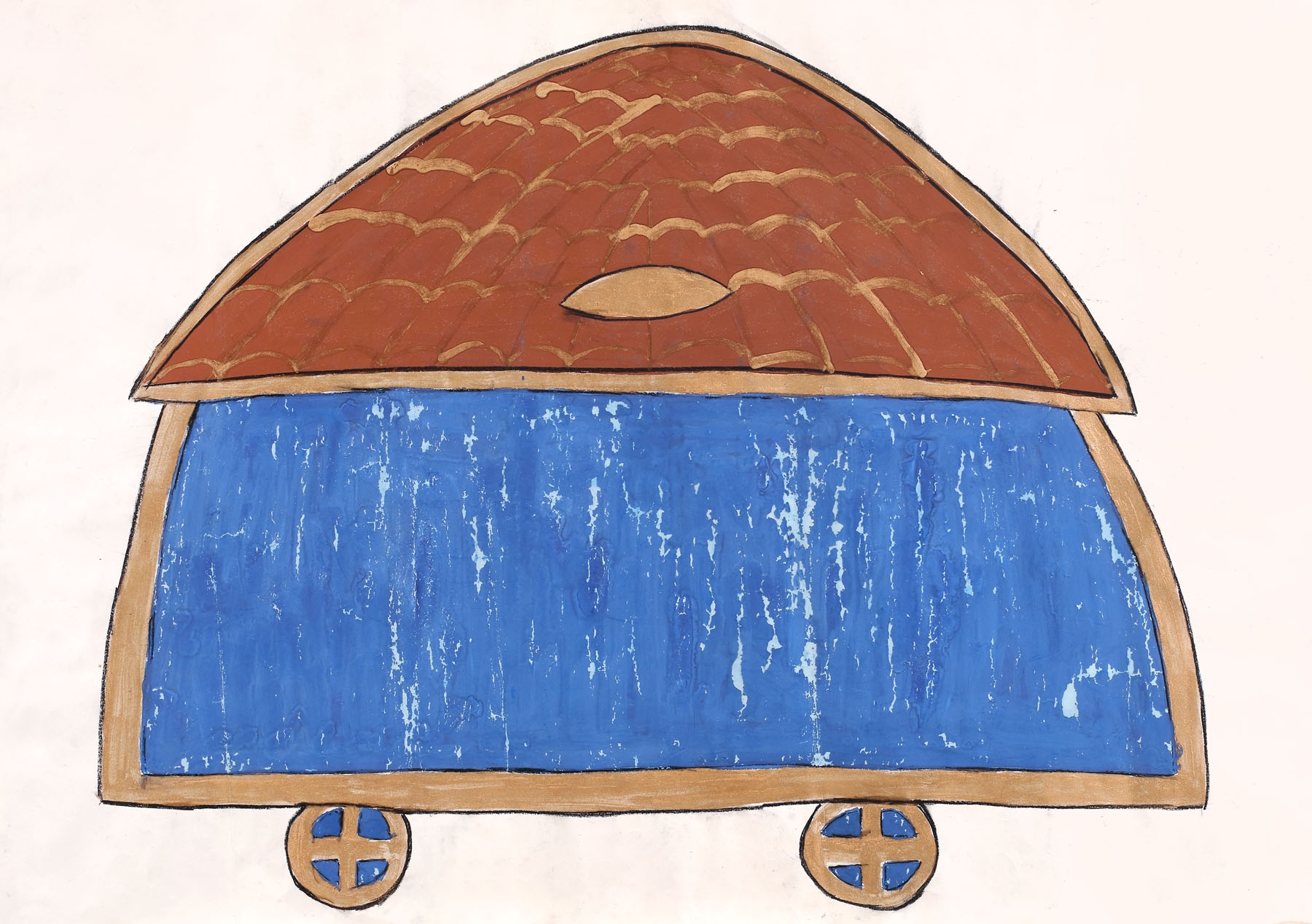 tempera, acrilic auriu și cărbune pe hârtie