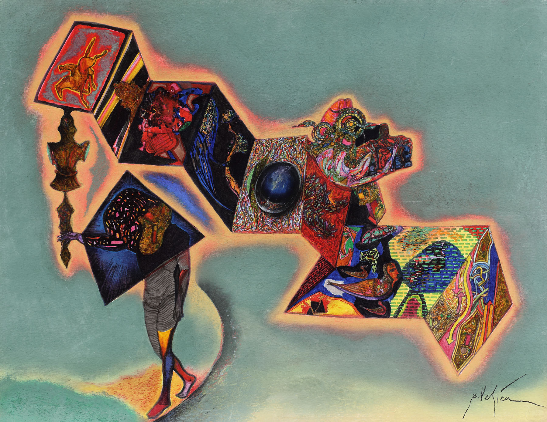cariocă, guașă, ceracolor și pix pe carton