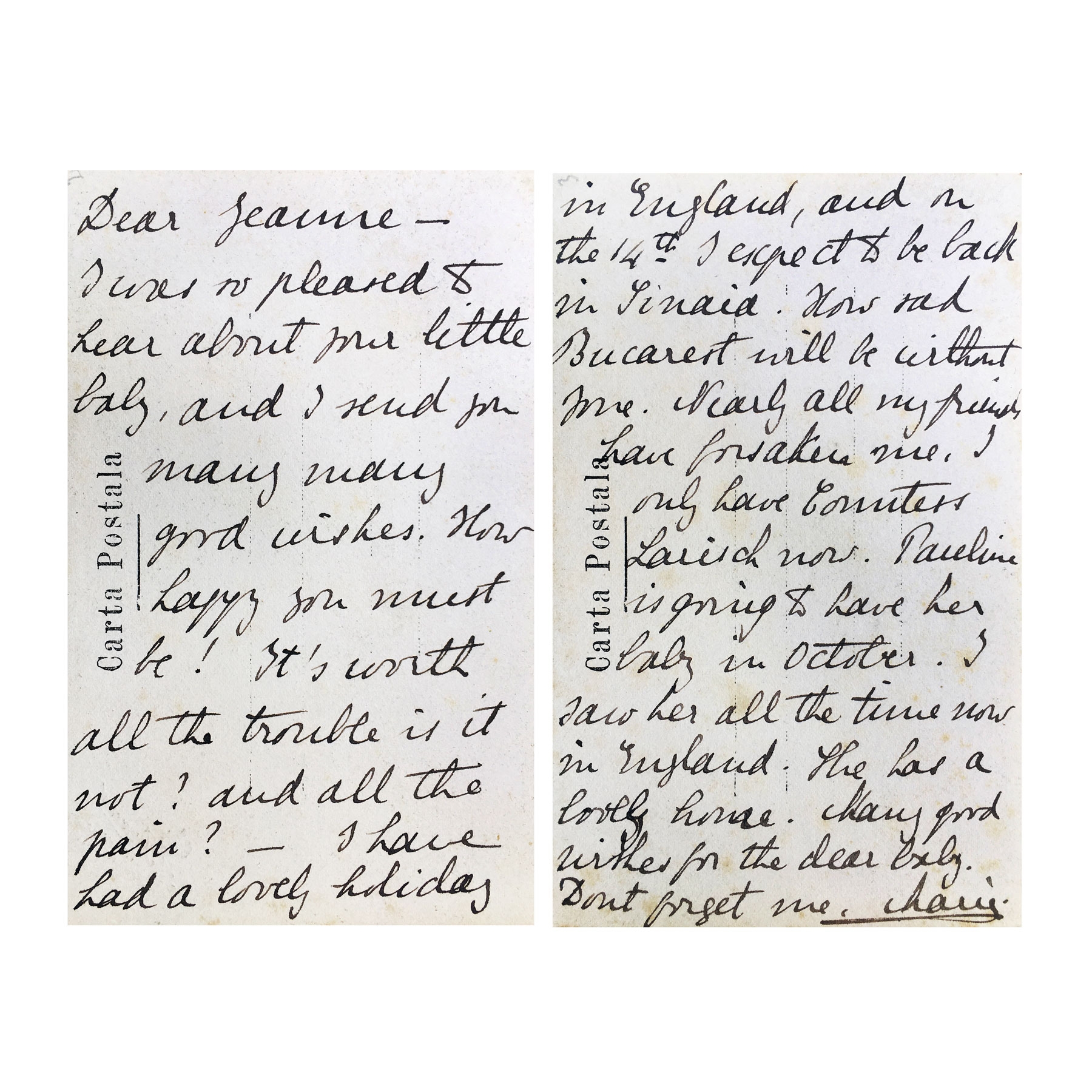 70. Lot format din două cărți poștale trimise de Regina Maria către Jeanne Aisene Henry, cu semnătura olografă, cca. 1915