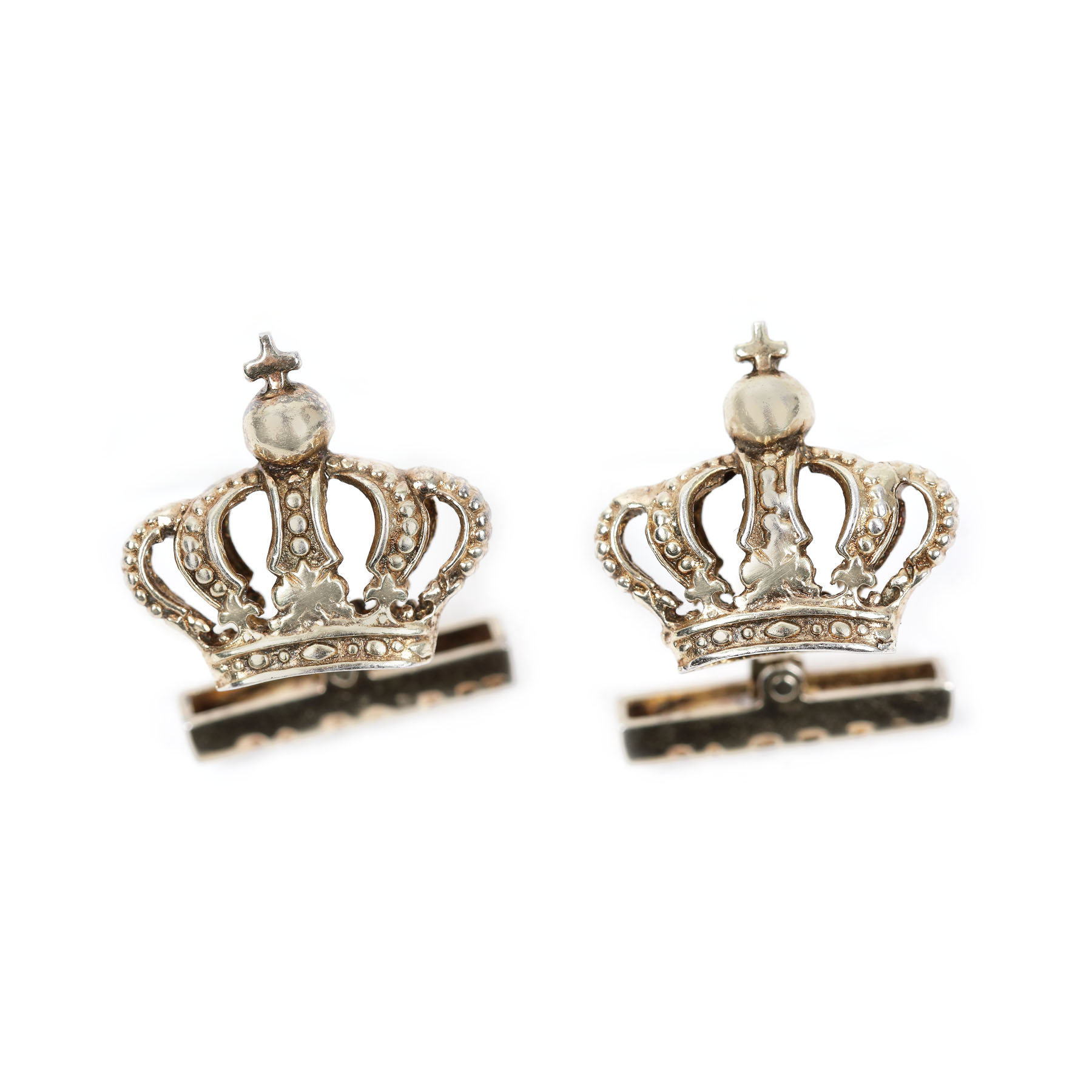 83. Pereche de butoni din argint aurit, decorați cu coroana regală