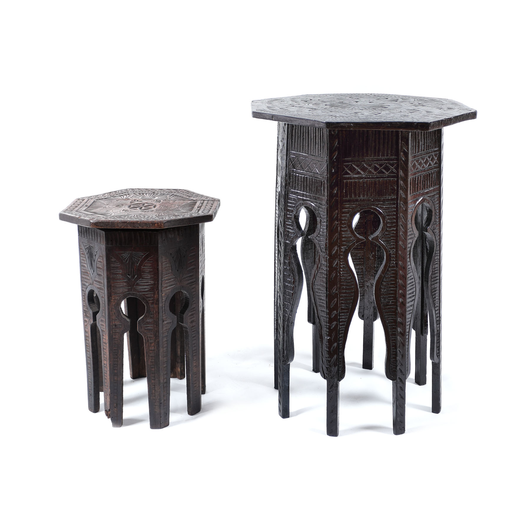 47. Pereche de măsuțe din lemn, realizată în stil Neo-Românesc, începutul sec. XX