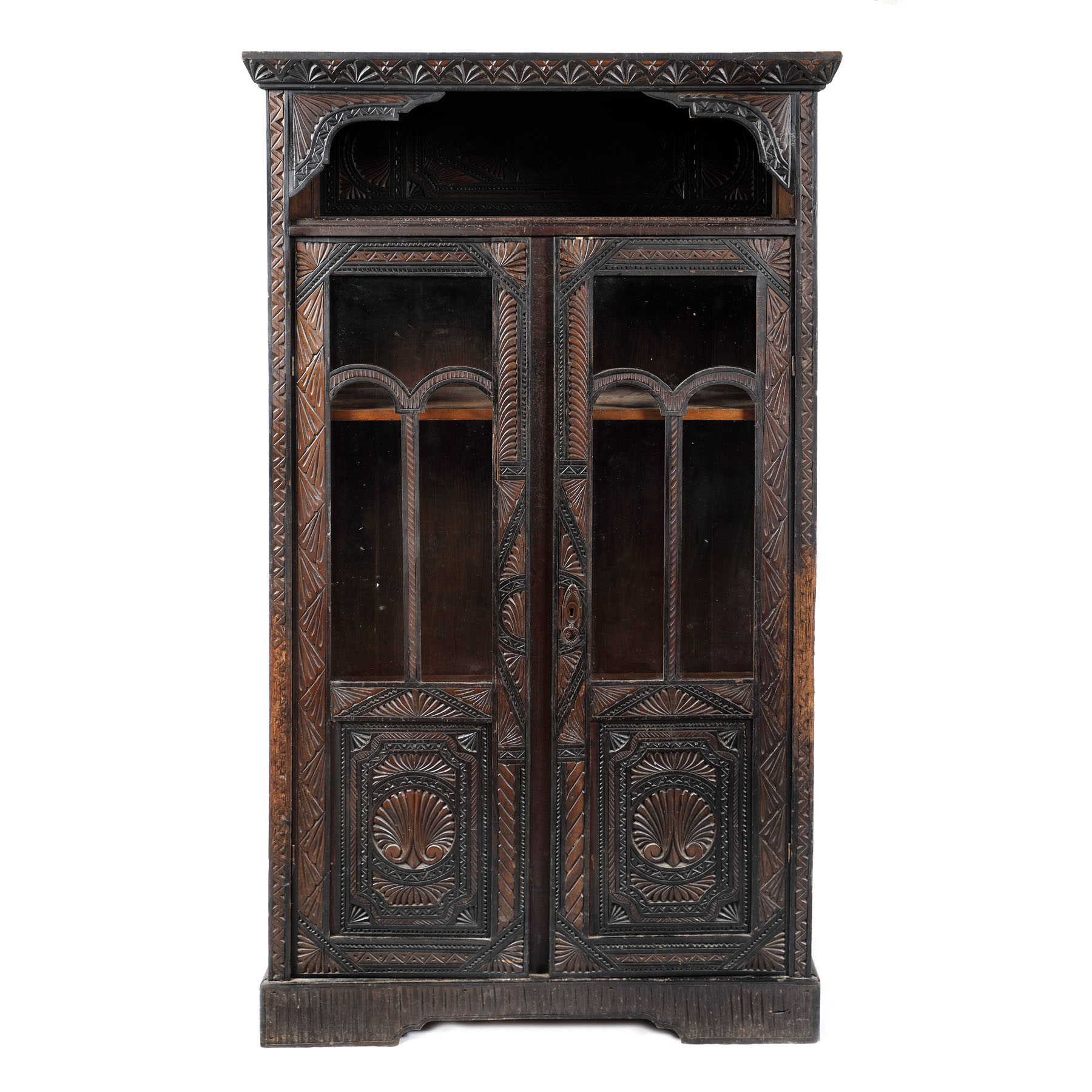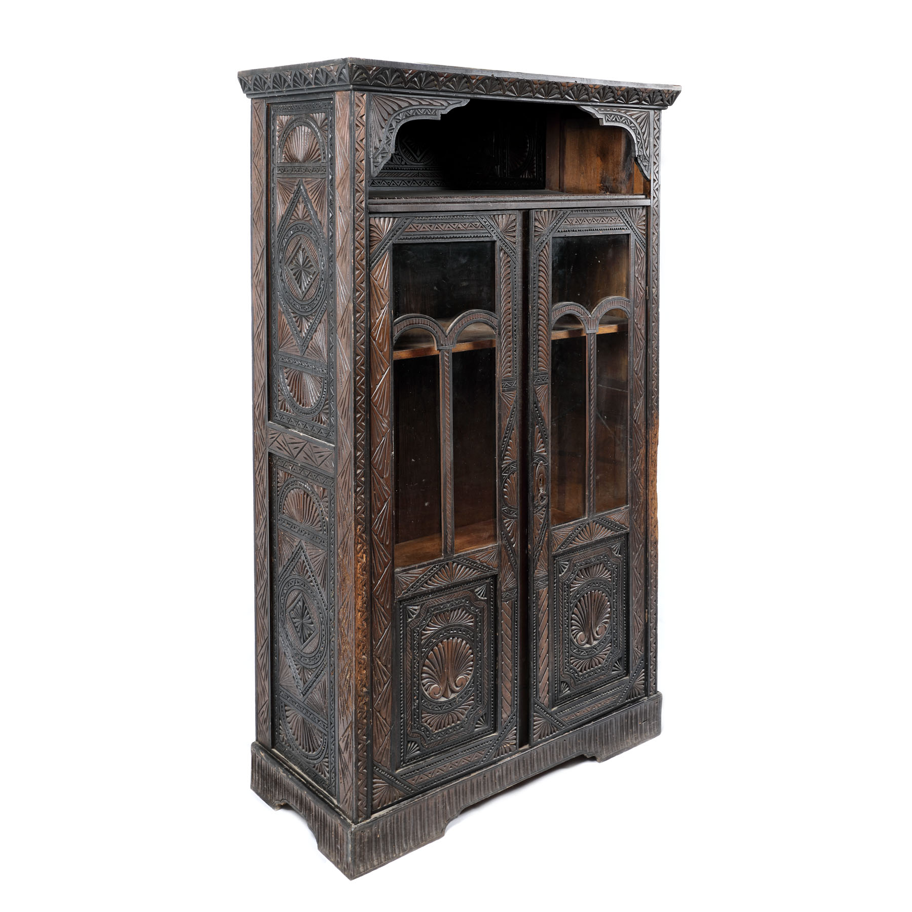 50. Vitrină din lemn de tei, realizată în stil Neo-Românesc, începutul sec. XX