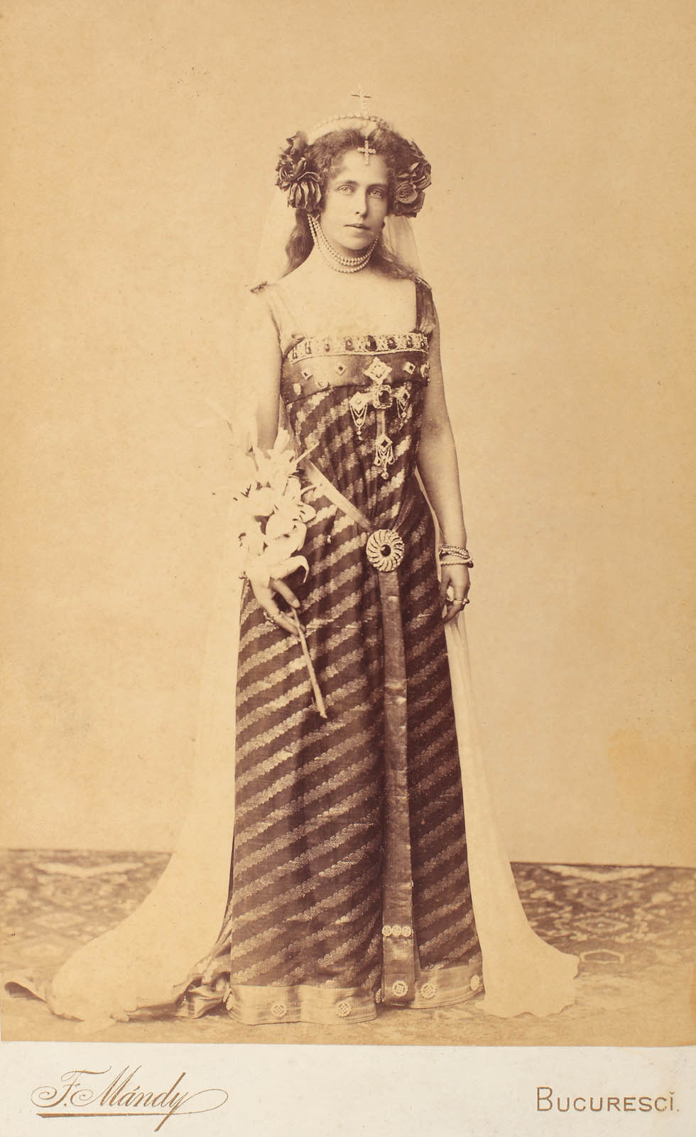 46. Fotografie a principesei Maria a României, în costum de inspirație Art Nouveau, fotograful Curţii Regale Franz Mandy, cca. 1900, piesă rară, de colecție