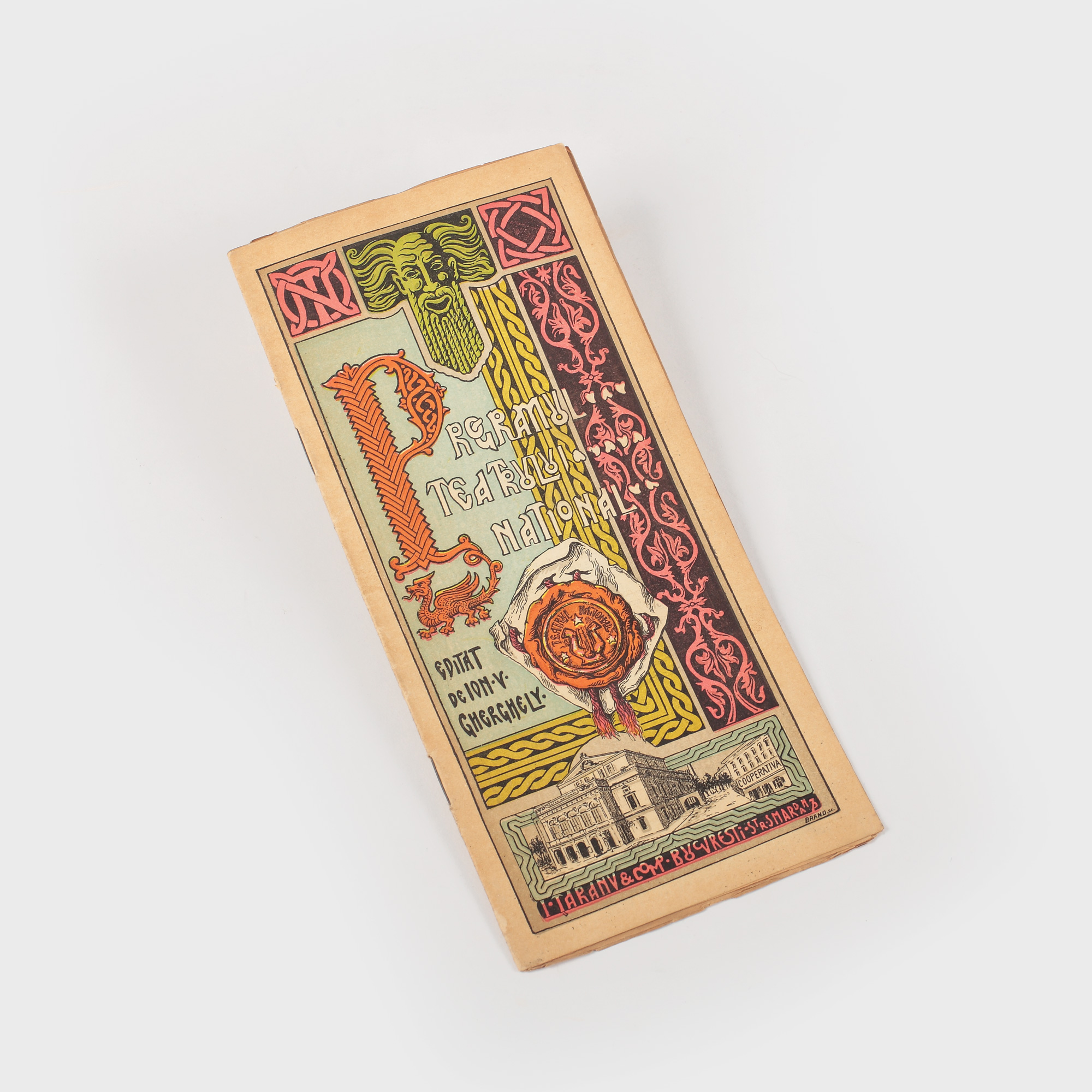 Programul, cu o copertă splendid decorată în atelierul tipografic Brand din București, cuprinde nu doar spectacolele stagiunii respective, ci și numeroase reclame, ceea ce îl transformă într-o piesă de colecție și într-un document istoric.
