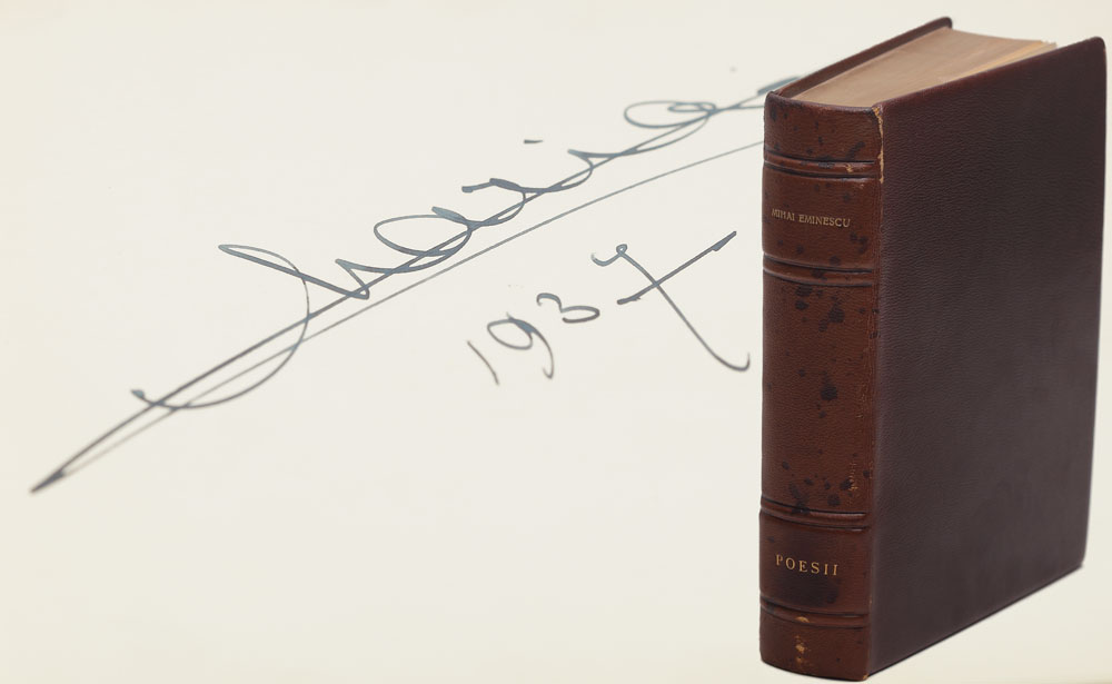 42. 'Poesii' de Mihai Eminescu, 1933, cu autograful Reginei Maria