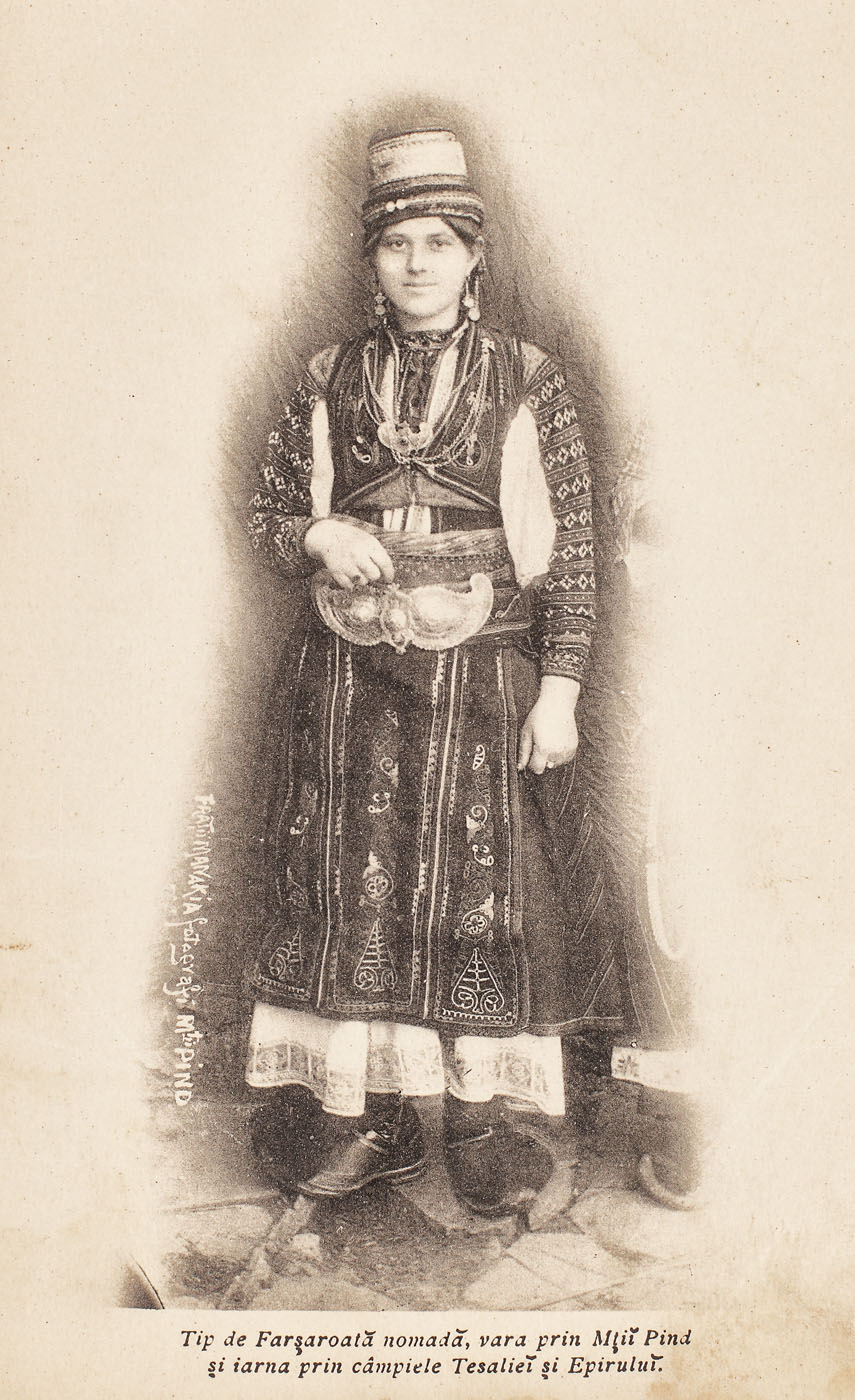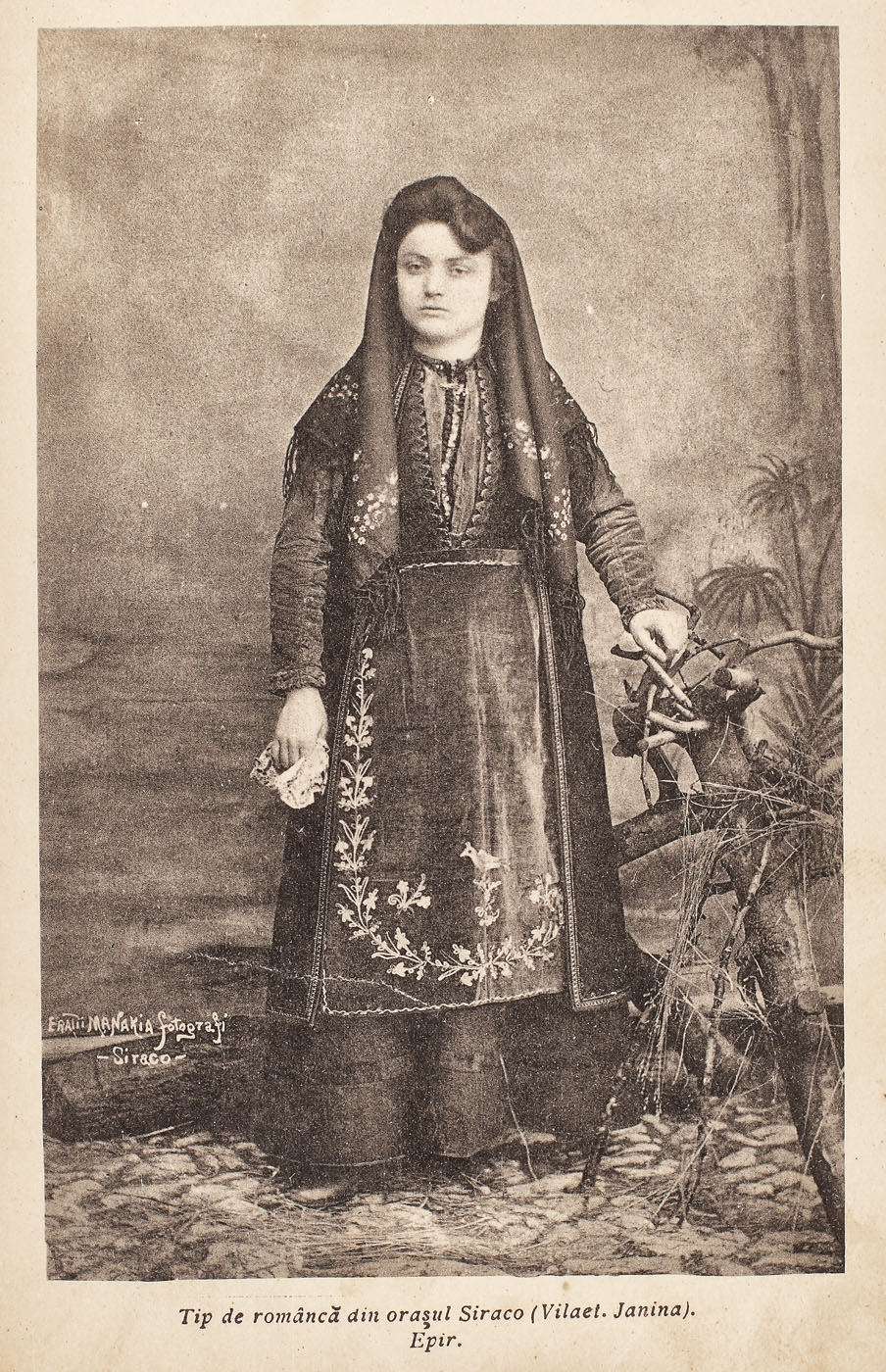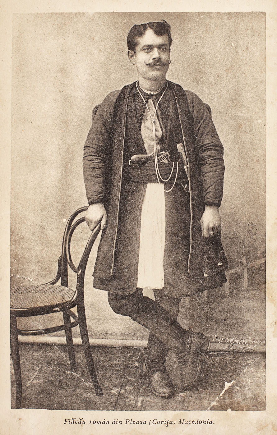 74. Album de colecţie, reprezentând așezări macedo-române și aromâni în costume tradiționale, din Macedonia și Albania, realizat de frații Manakia "experți fotografi și foto-cinimatografi", cca. 1908