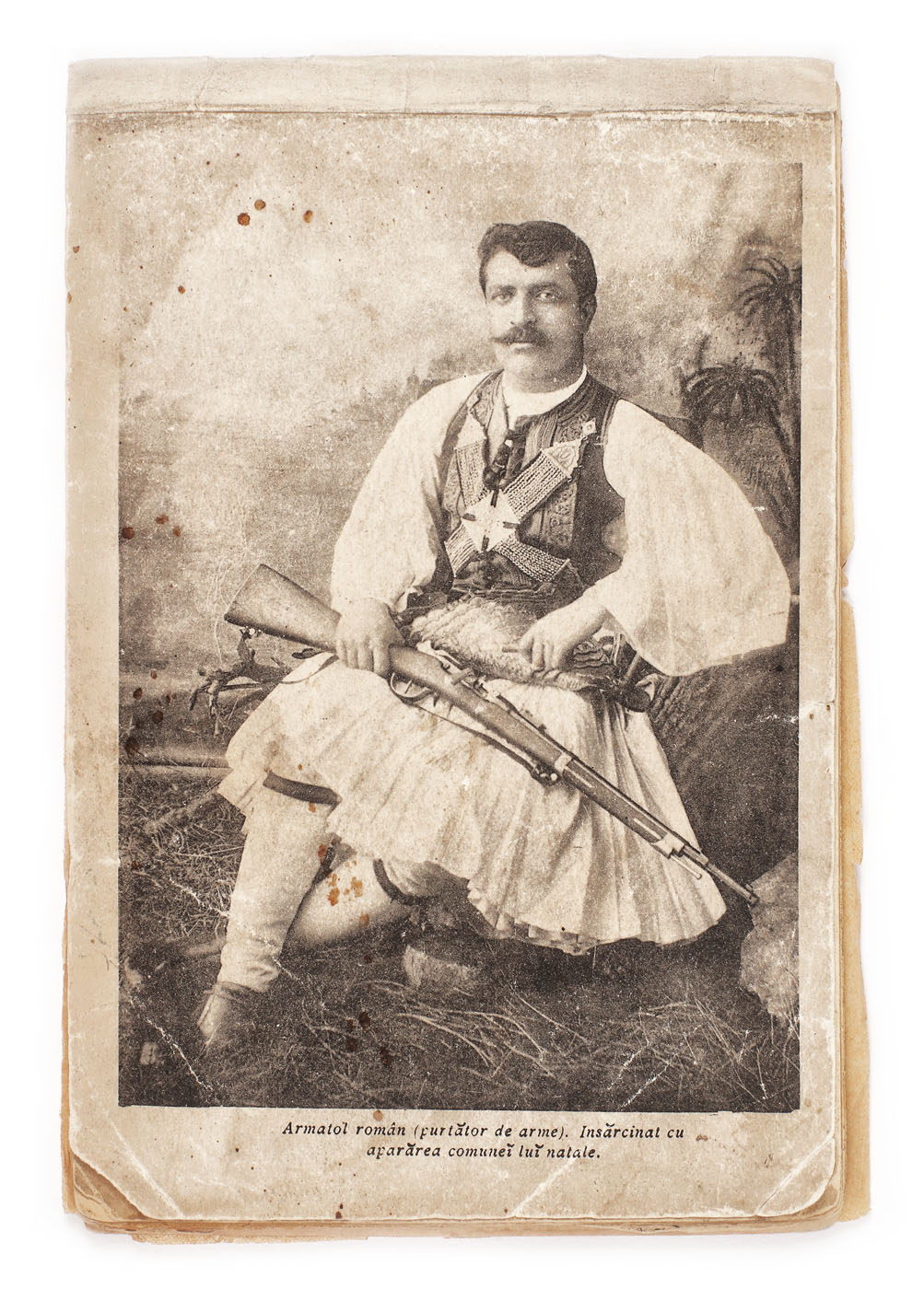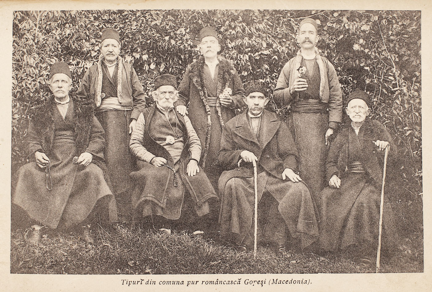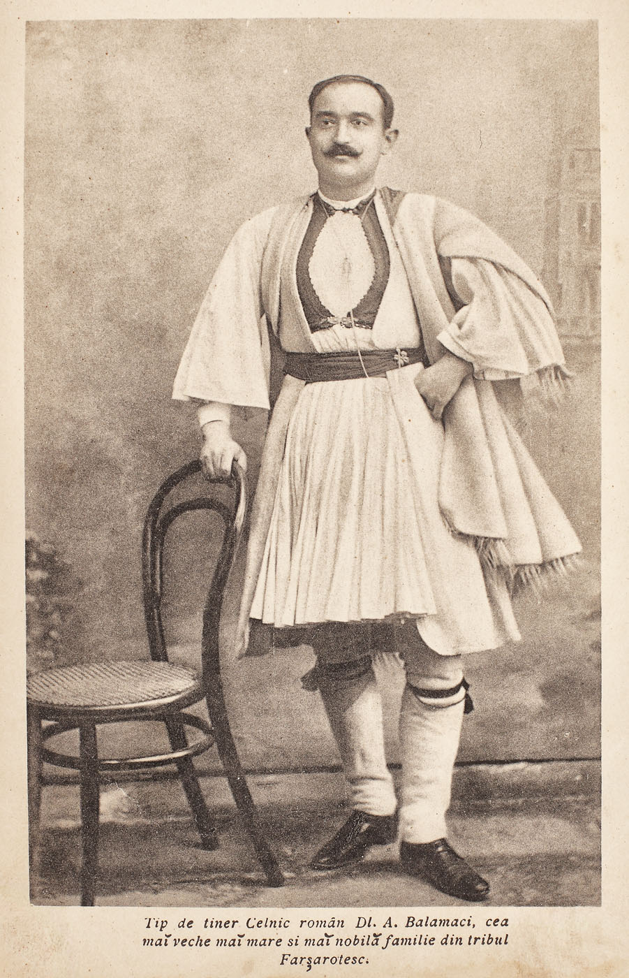 74. Album de colecţie, reprezentând așezări macedo-române și aromâni în costume tradiționale, din Macedonia și Albania, realizat de frații Manakia "experți fotografi și foto-cinimatografi", cca. 1908