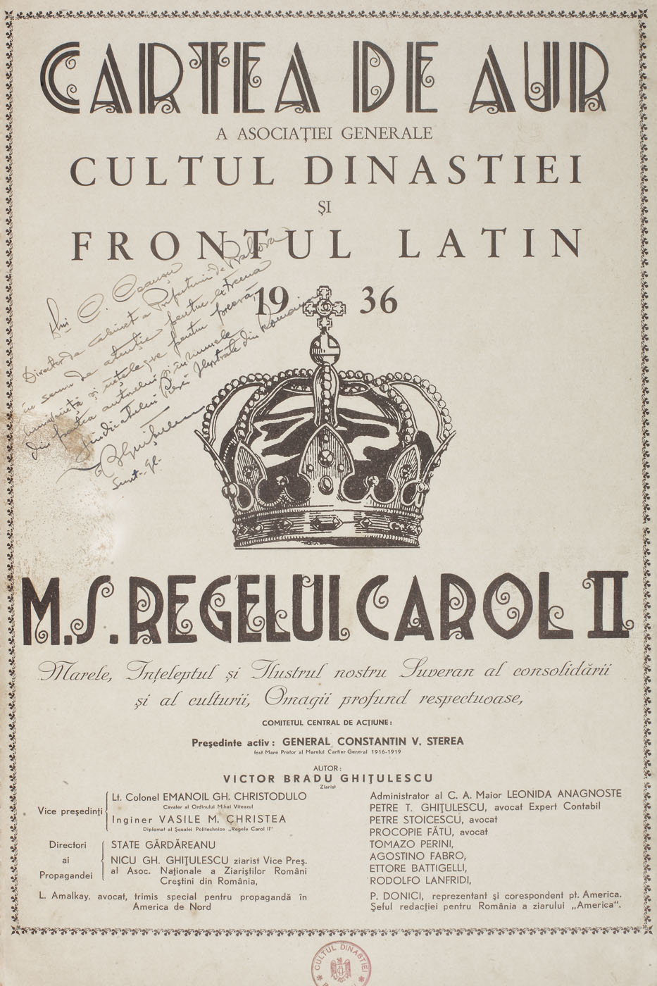 66. ”Cartea de aur, cultul dinastiei”, de Victor Bradu Ghițulescu, cu dedicația autorului, 1937