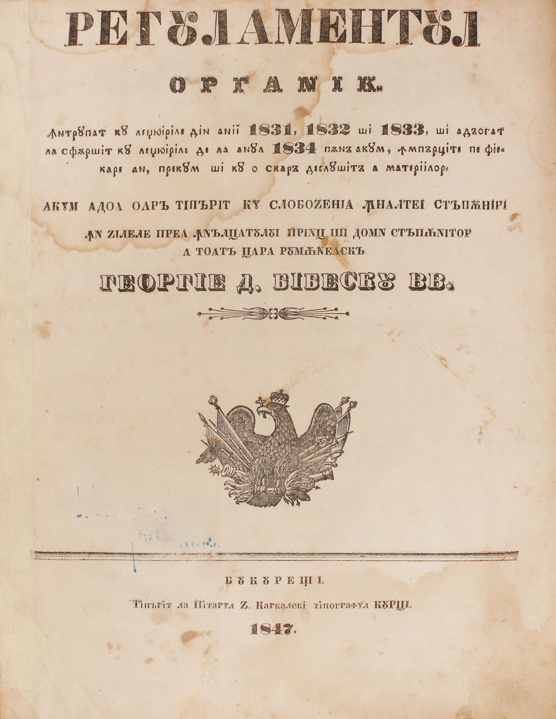 78. "Regulamentul Organic pentru Ţara Românească", Bucureşti, 1847 [1847]