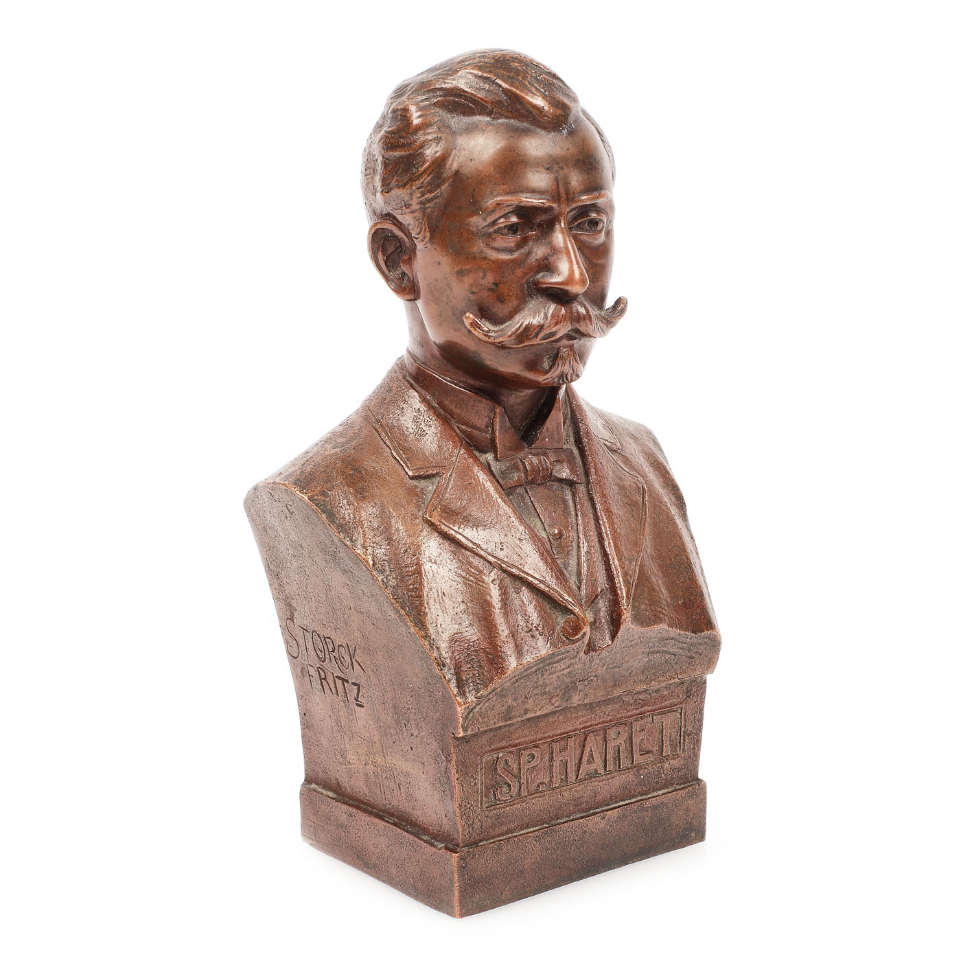 semnat lateral stânga, prin incizie, "STORCK FRITZ"; localizat și datat lateral dreapta, prin incizie, "BUCURESCI, 1904"; intitulat central jos, "SP. HARET"