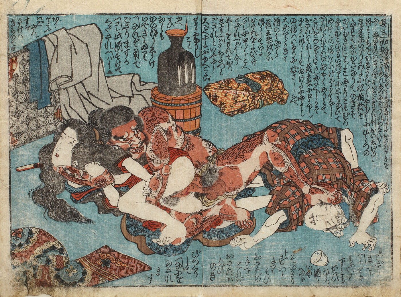 374. Scenă erotică (Shunga), cu un diavol separând doi iubiți, cca. 1830