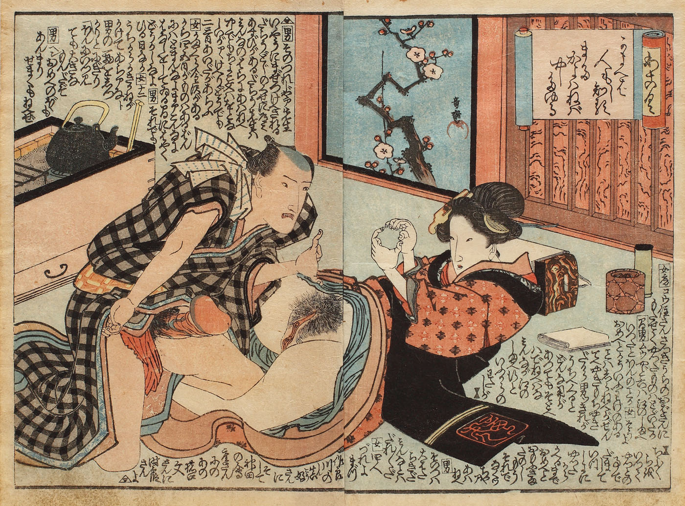 375. Scenă erotică (Shunga), reprezentând un cuplu înainte consumarea actului erotic, cca. 1840