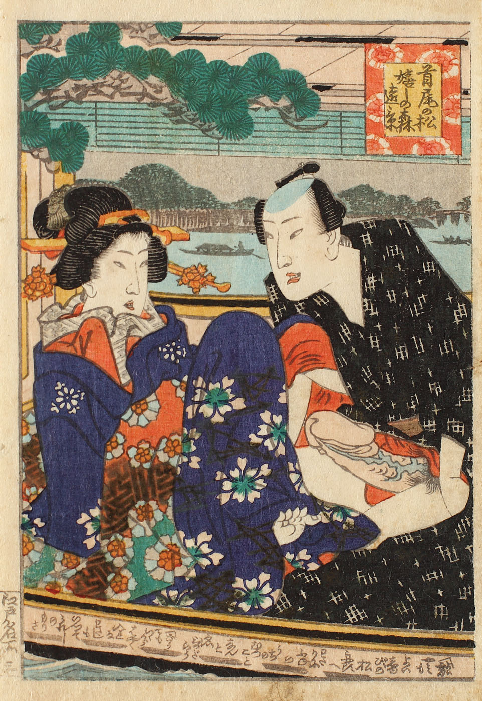 393. Scenă erotică (Shunga), reprezentând un cuplu înainte de consumarea actului erotic, cca. 1860