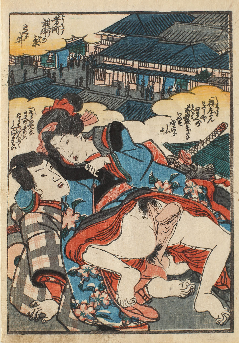399. Scenă erotică (Shunga), reprezentând un cuplu într-un spaţiu urban, realizat individual, cca. 1845-1855