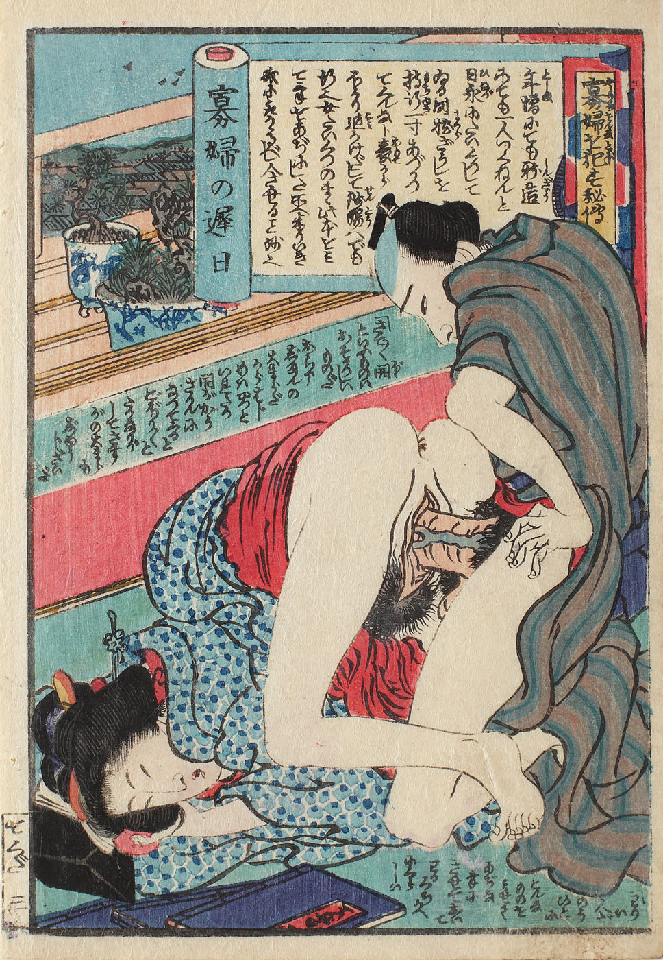 387. Scenă erotică (Shunga), reprezentând un cuplu la fereastră, cca. 1865-1870