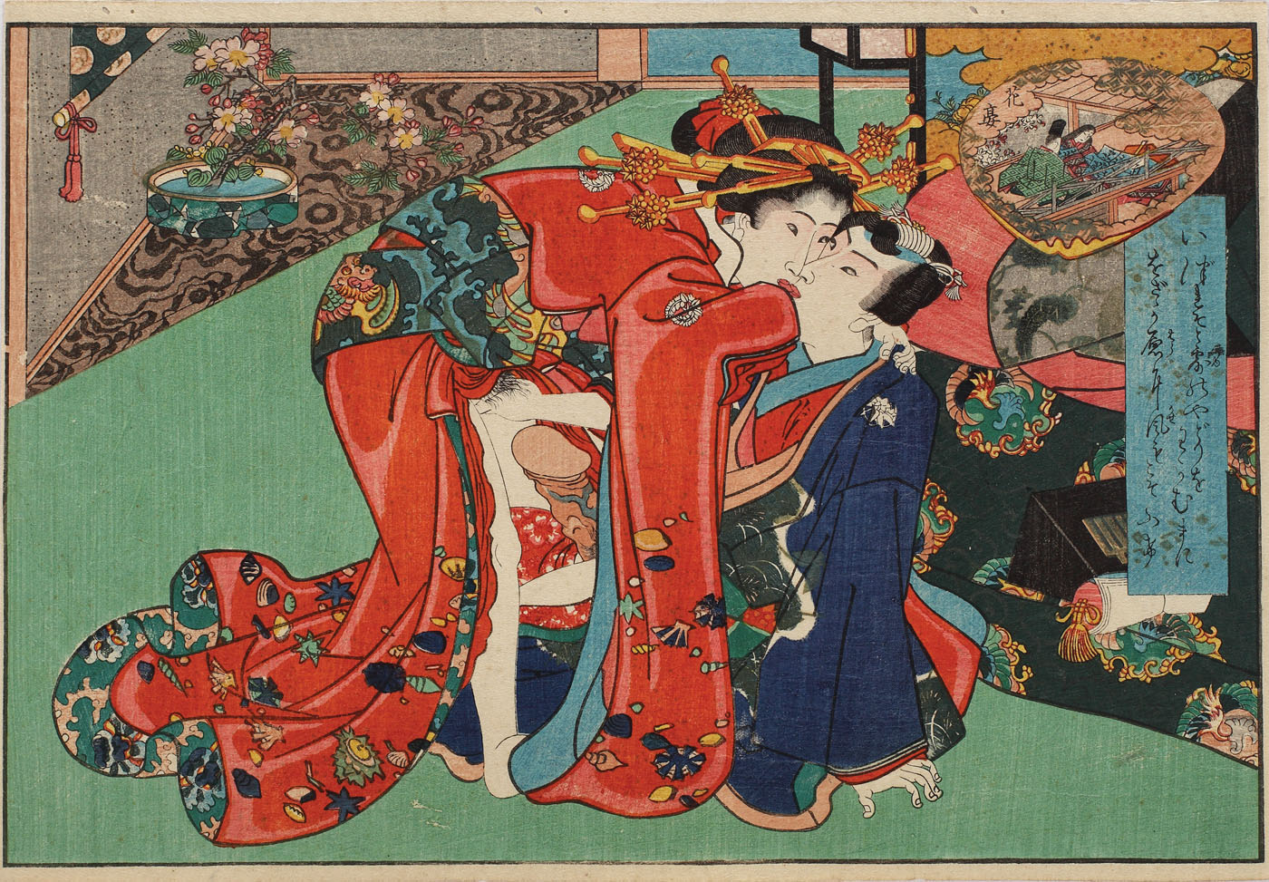 392. Scenă erotică (Shunga), reprezentându-l pe prinţul Genji şi pe iubita acestuia, cca. 1840-1850