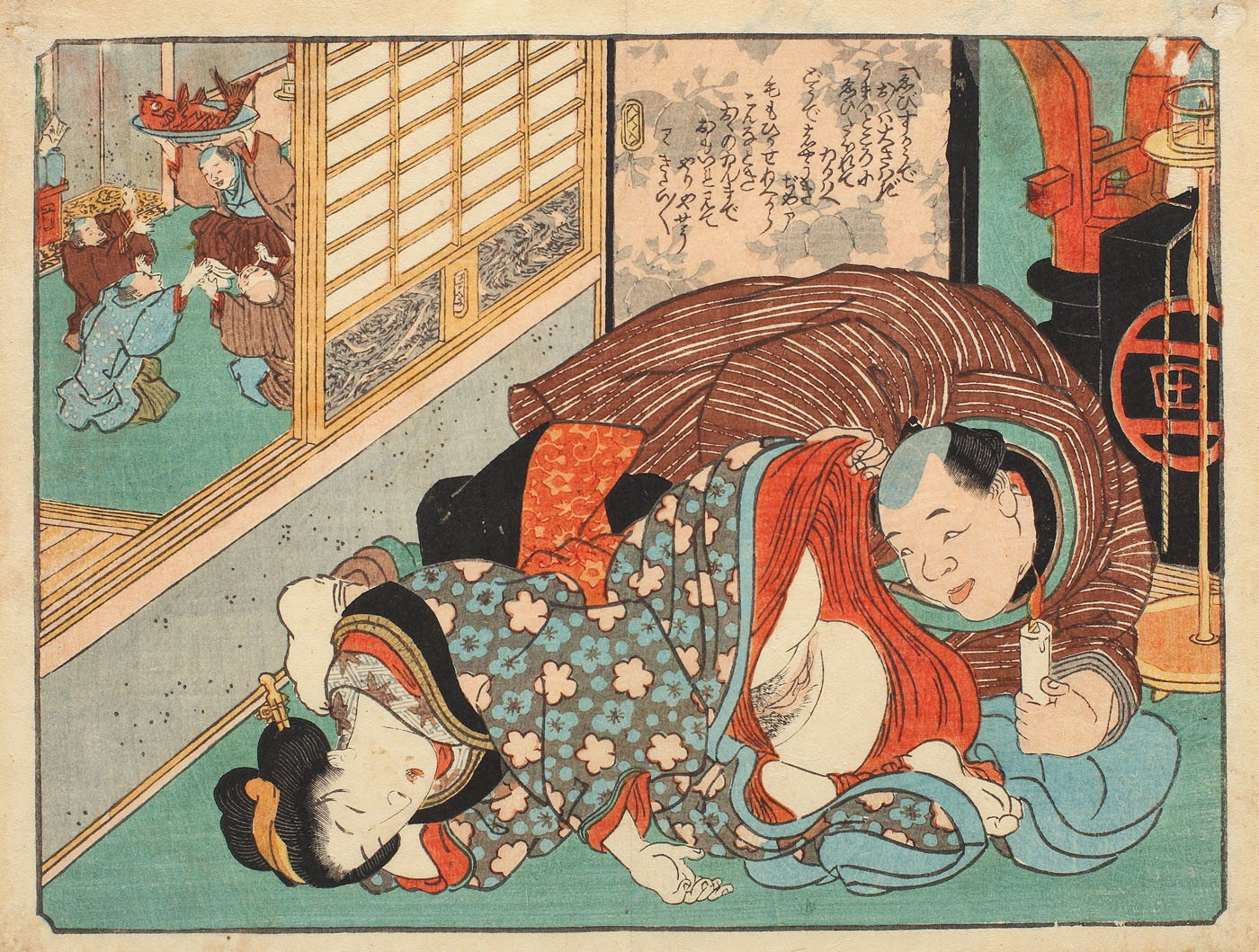 seria Ju Hachi Kin (Material interzis persoanelor sub 18 ani); tehnică Nishiki-e
