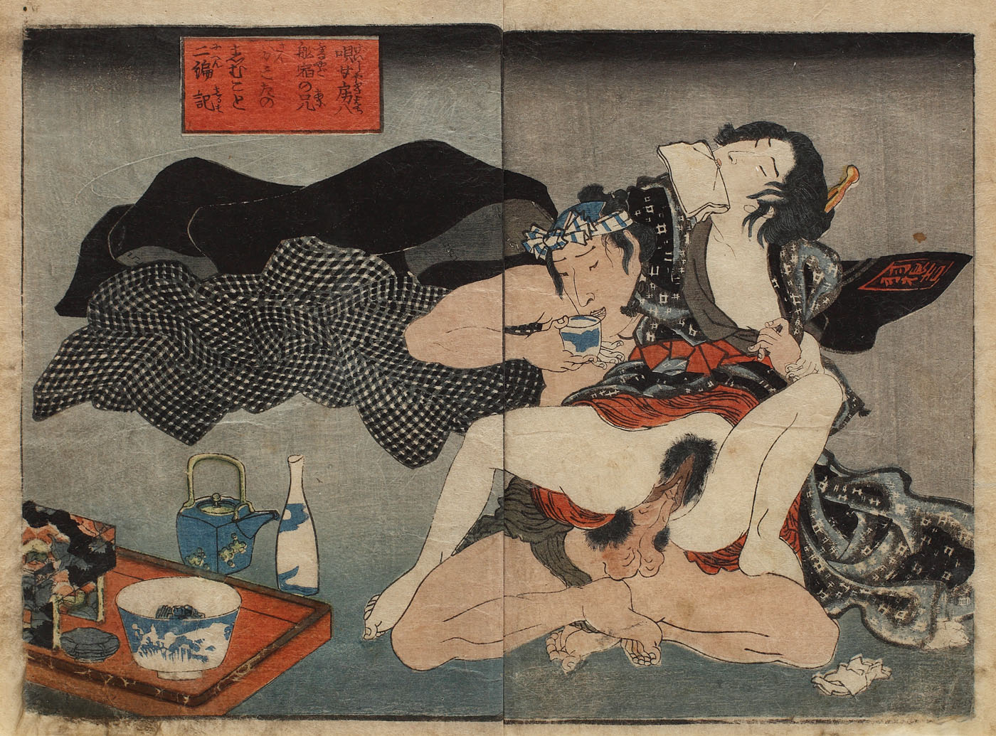 376. Un tânăr sorbind din ceai în timp ce iubita acestuia este în extaz (seria "Koi No Yatsu Fuji"/Set de trei)