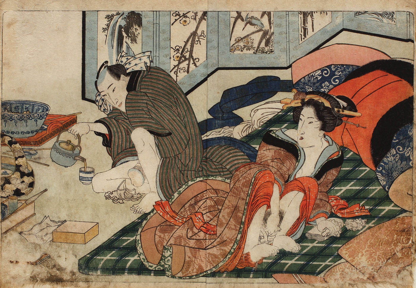 377. Scenă erotică (Shunga), surprinzând un moment ulterior episodului erotic, 1827
