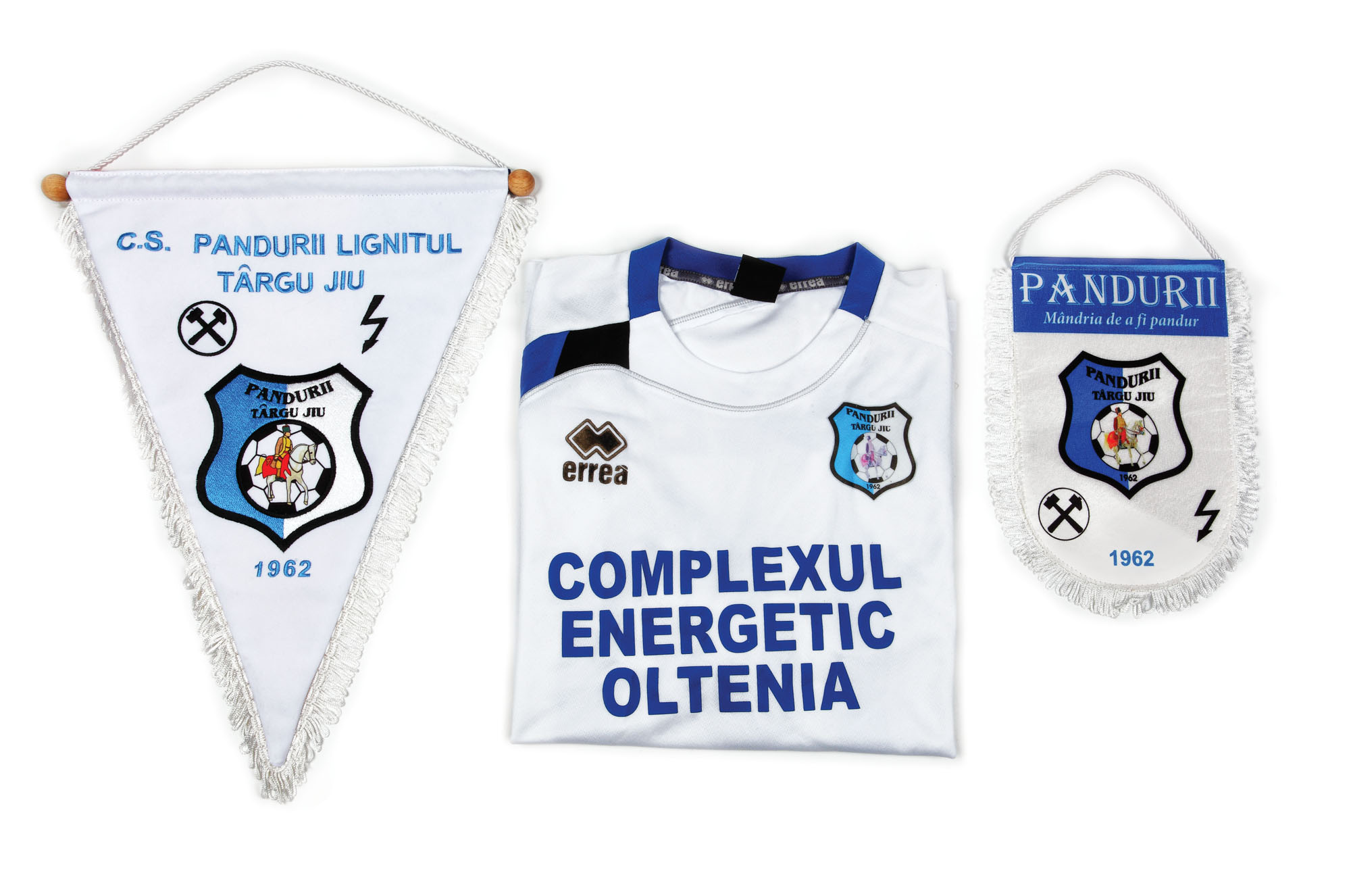 37. Lot format din tricou și 2 fanioane ale echipei de fotbal Pandurii Târgu Jiu, tricoul fiind inscripționat cu numărul 10