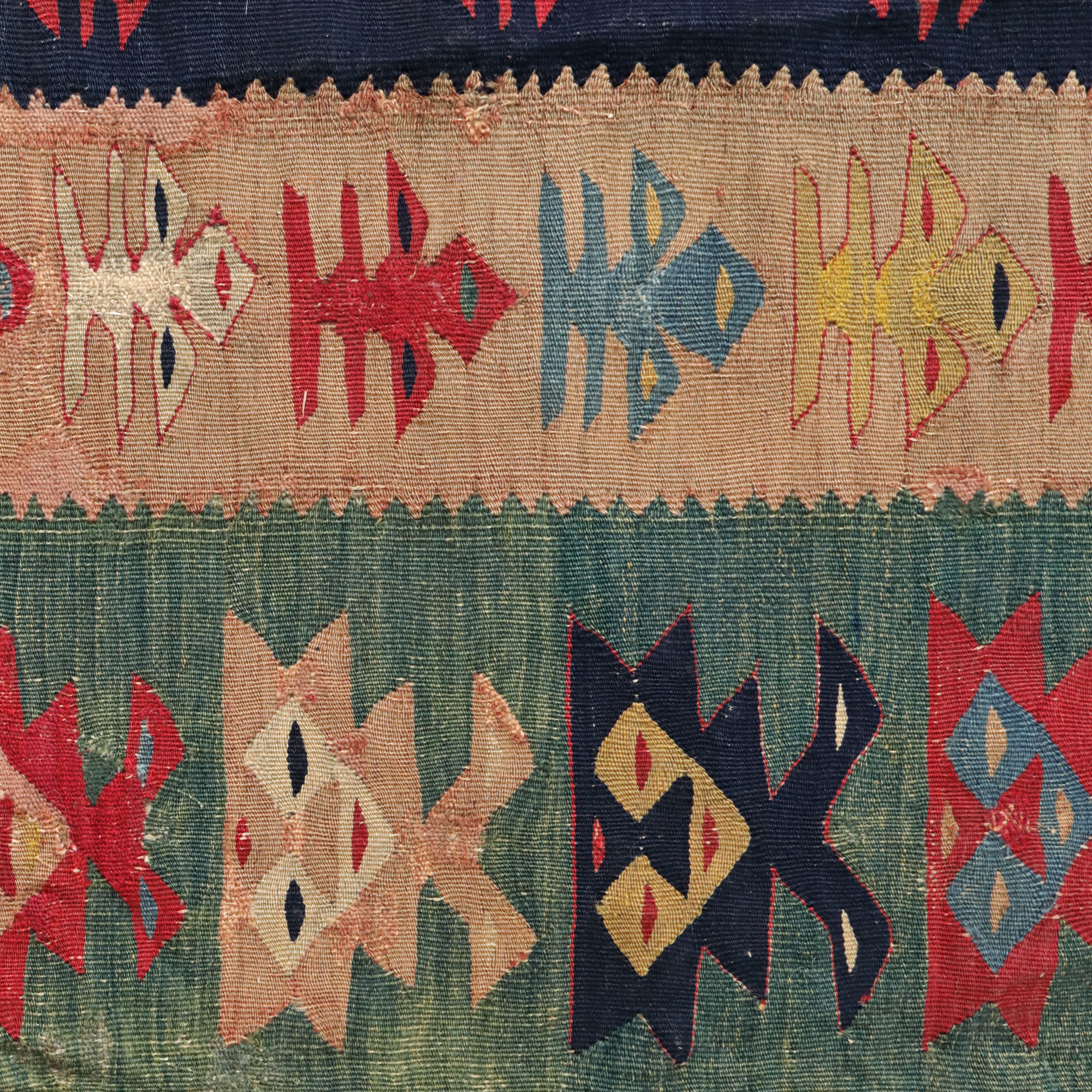 urzeală din lână, băteală din lână, țesut în război vertical în două ițe, cu urzeală ascunsă (două fețe), motive alese cu mâna printre fire și în tehnica karamani