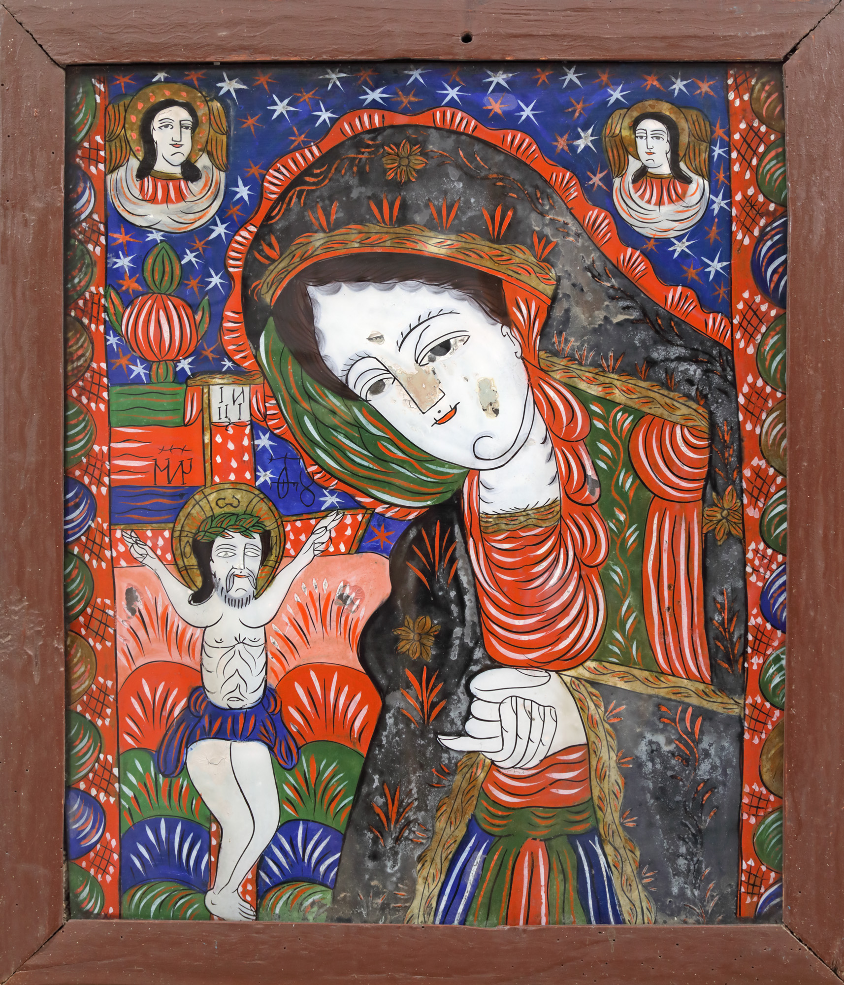 85. Icoană pe glajă, ”Maica Domnului Îndurerată”, atribuit zugrav Petru Tămaș-fiul, Făgăraș, sfârșitul sec. XIX, provine din colecția artistei Eugenia Iftodi