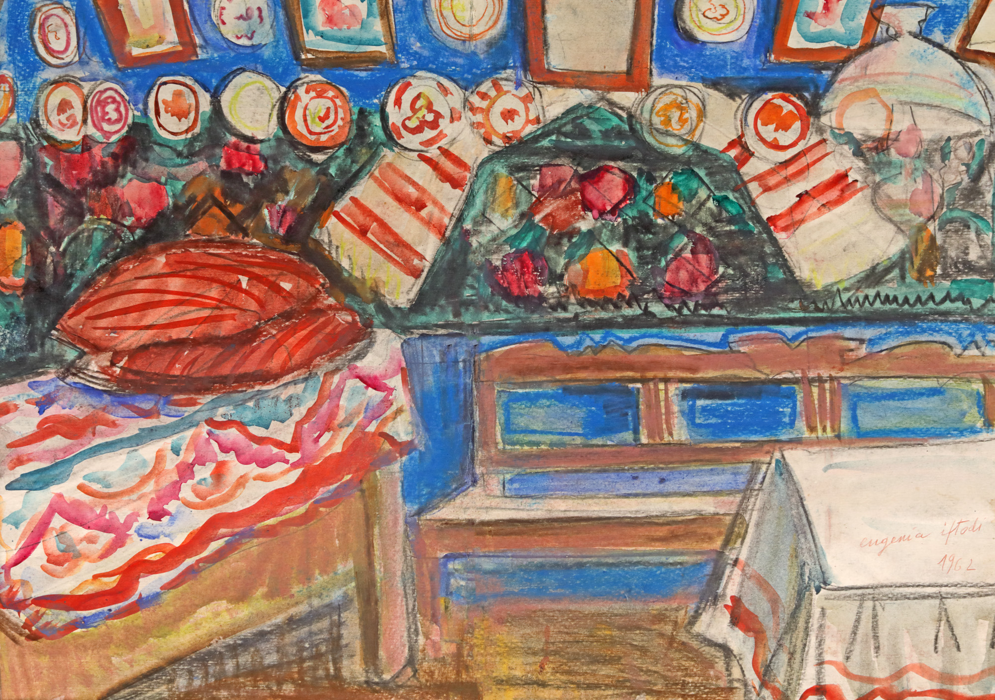 semnat și datat dreapta jos, cu roșu, "Eugenia Iftodi, 1962"