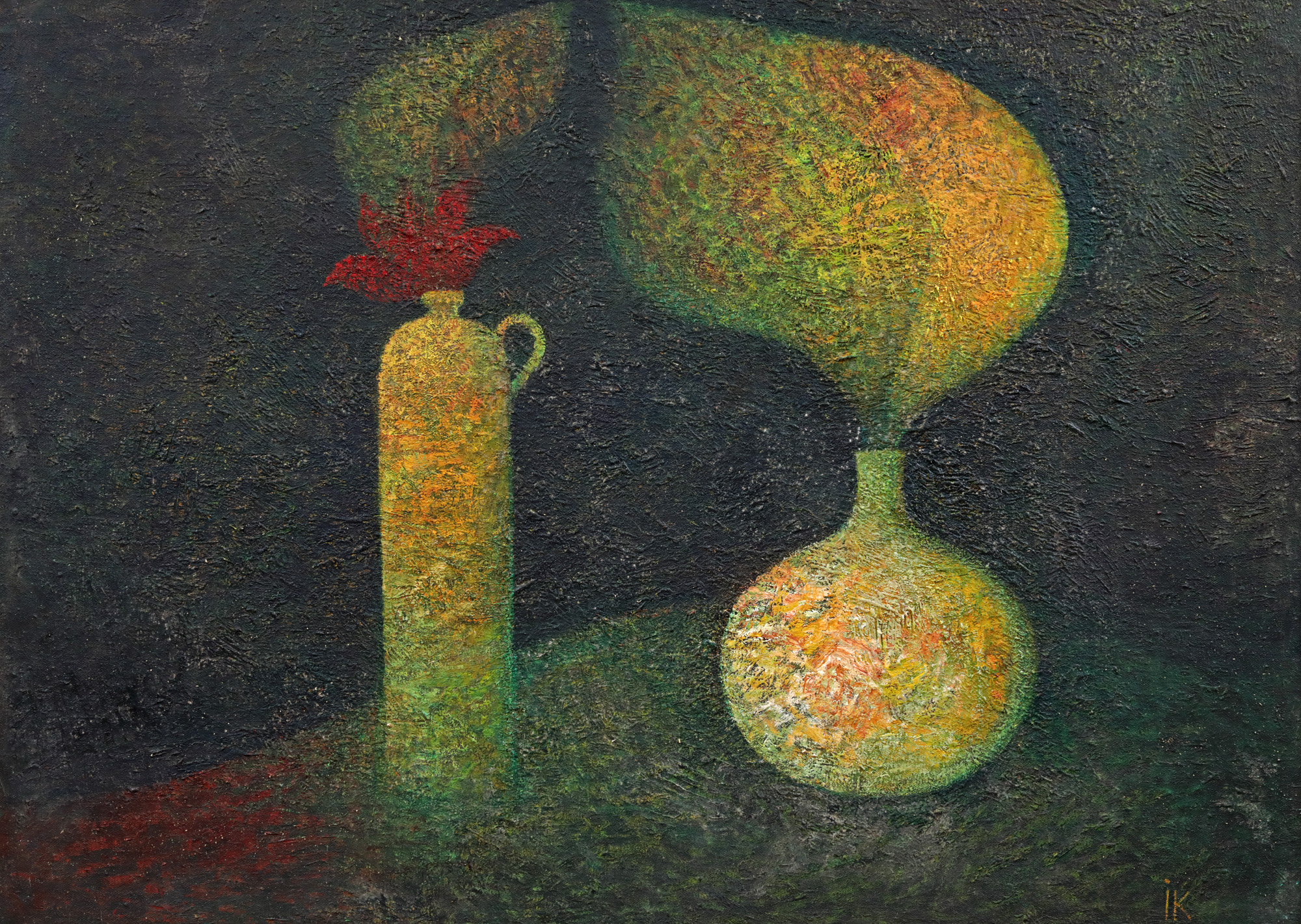 semnat dreapta jos, cu ocru, "IK"