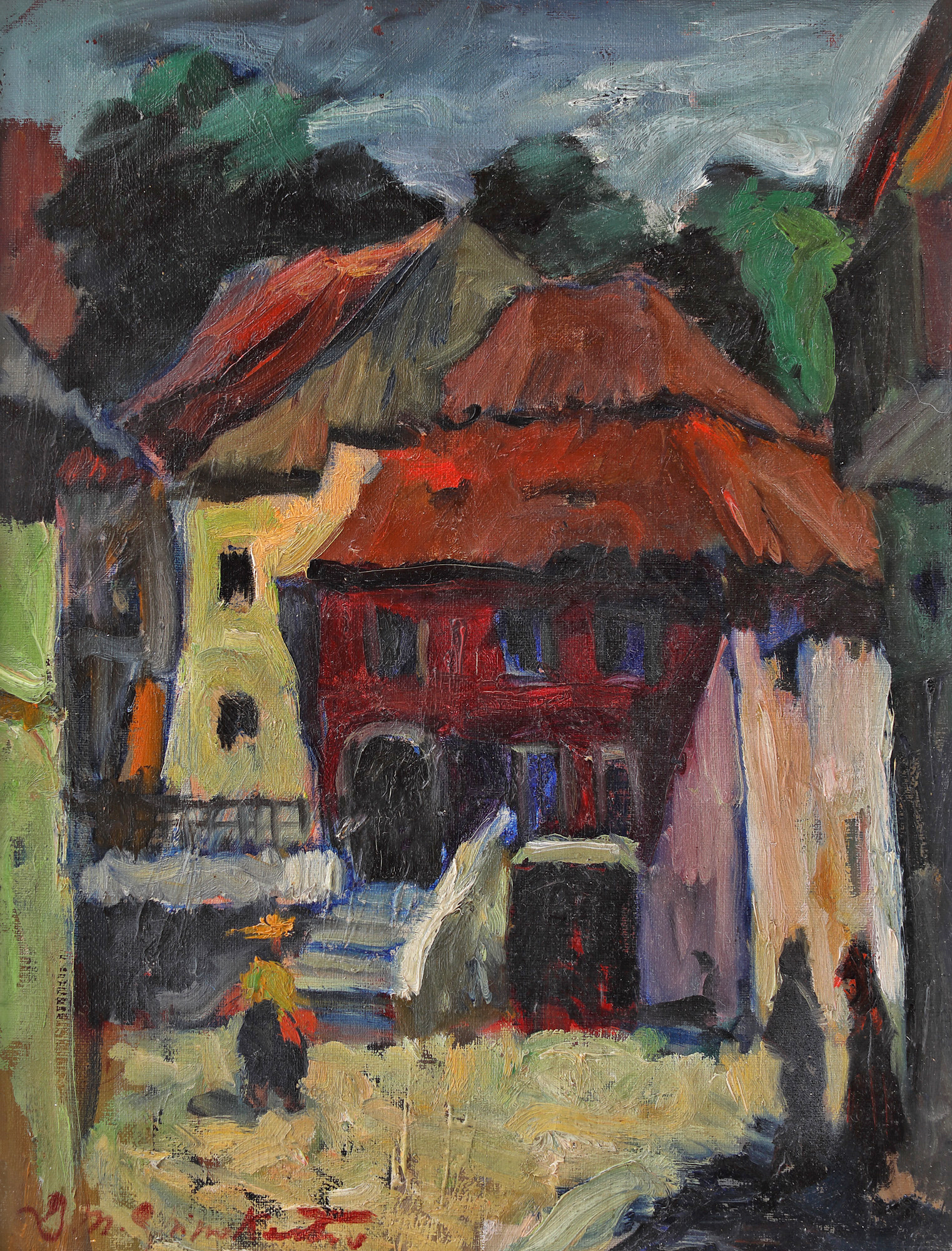 semnat și datat stânga jos, cu brun, "Dm. Ghinok. Istrati, 1949"