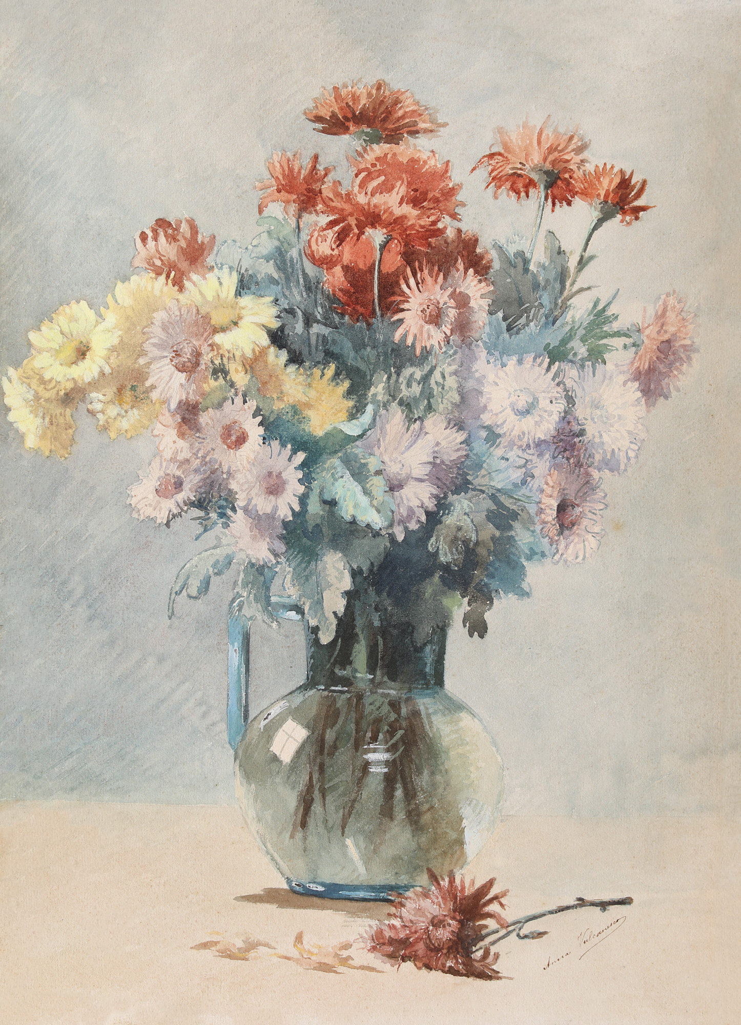semnat dreapta jos, cu roșu, "Anna Vulcănescu"