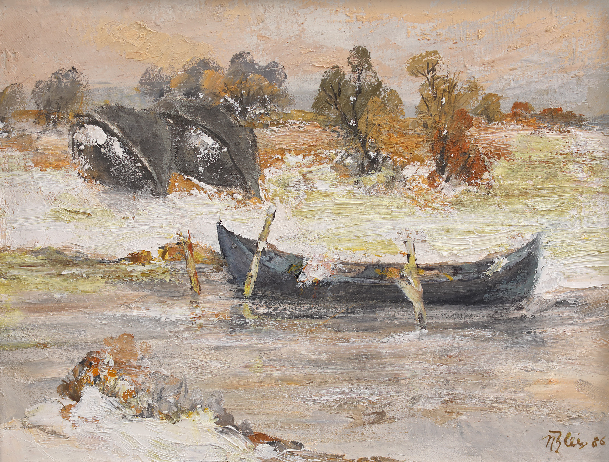 semnat și datat dreapta jos, cu ocru, "n. Blei, (19)84"