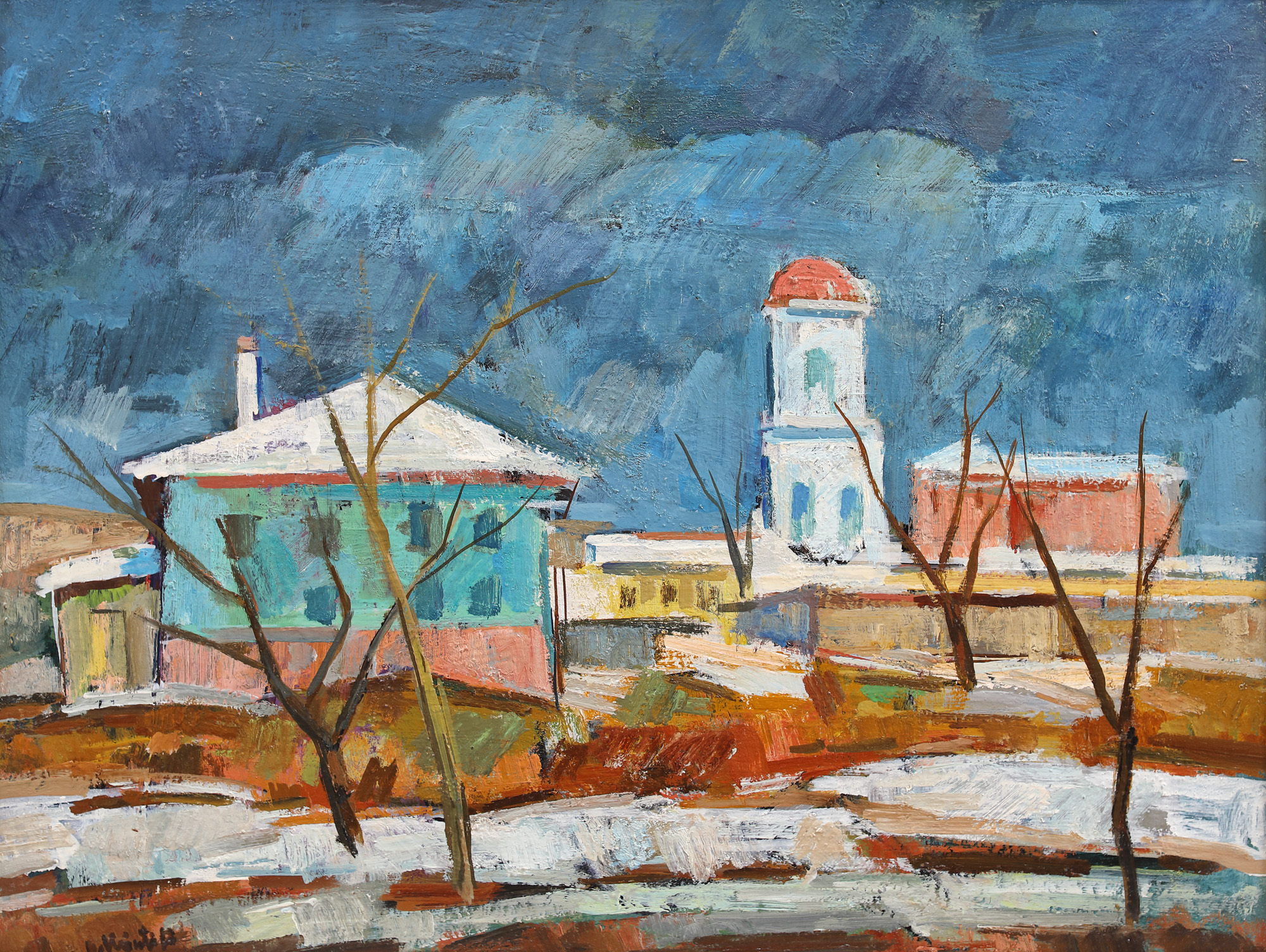 semnat stânga jos, cu brun, ”S. Chintilă”