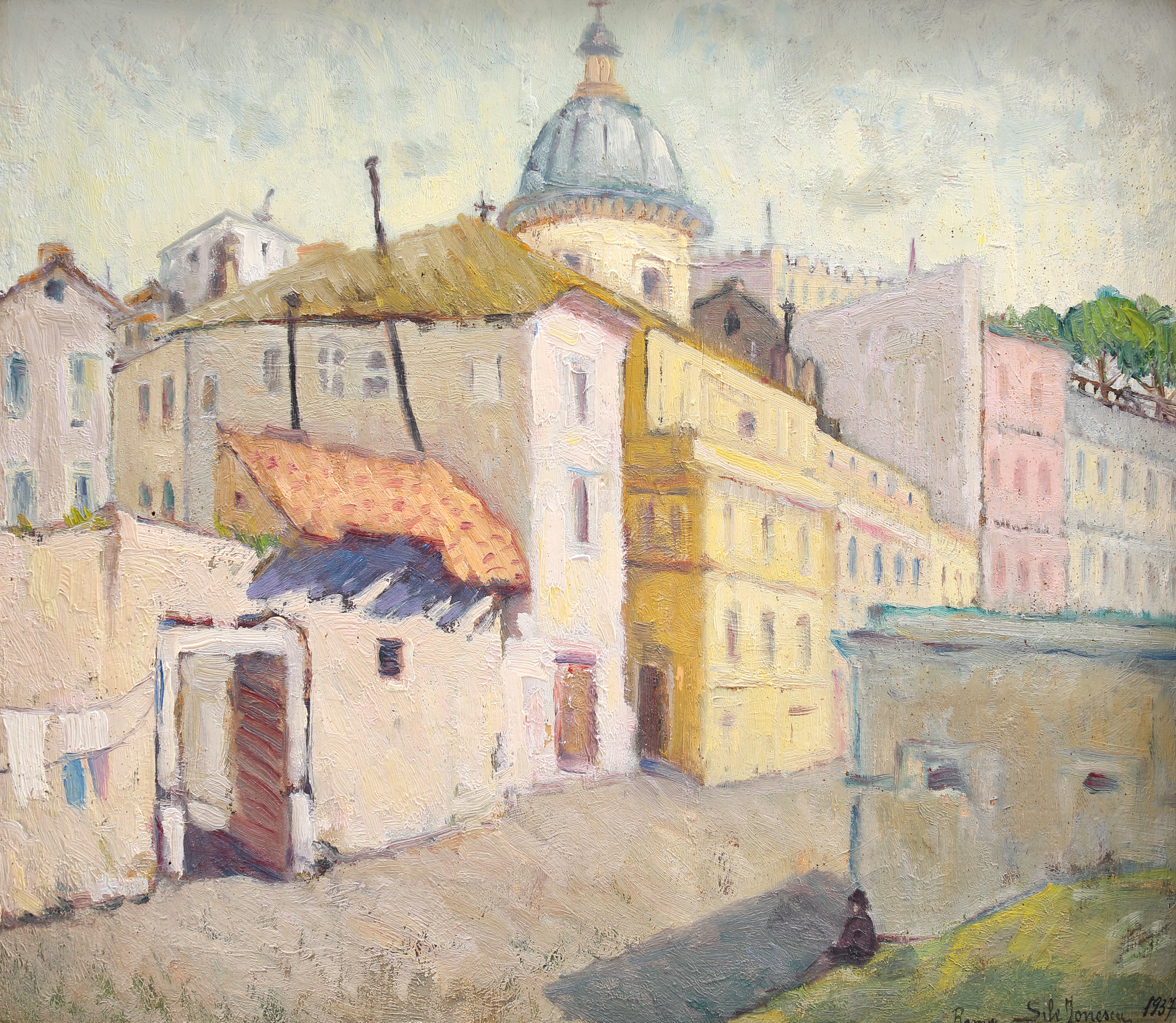 semnat, datat și localizat dreapta jos, cu negru, ”Sile Ionescu, Roma, 1937”