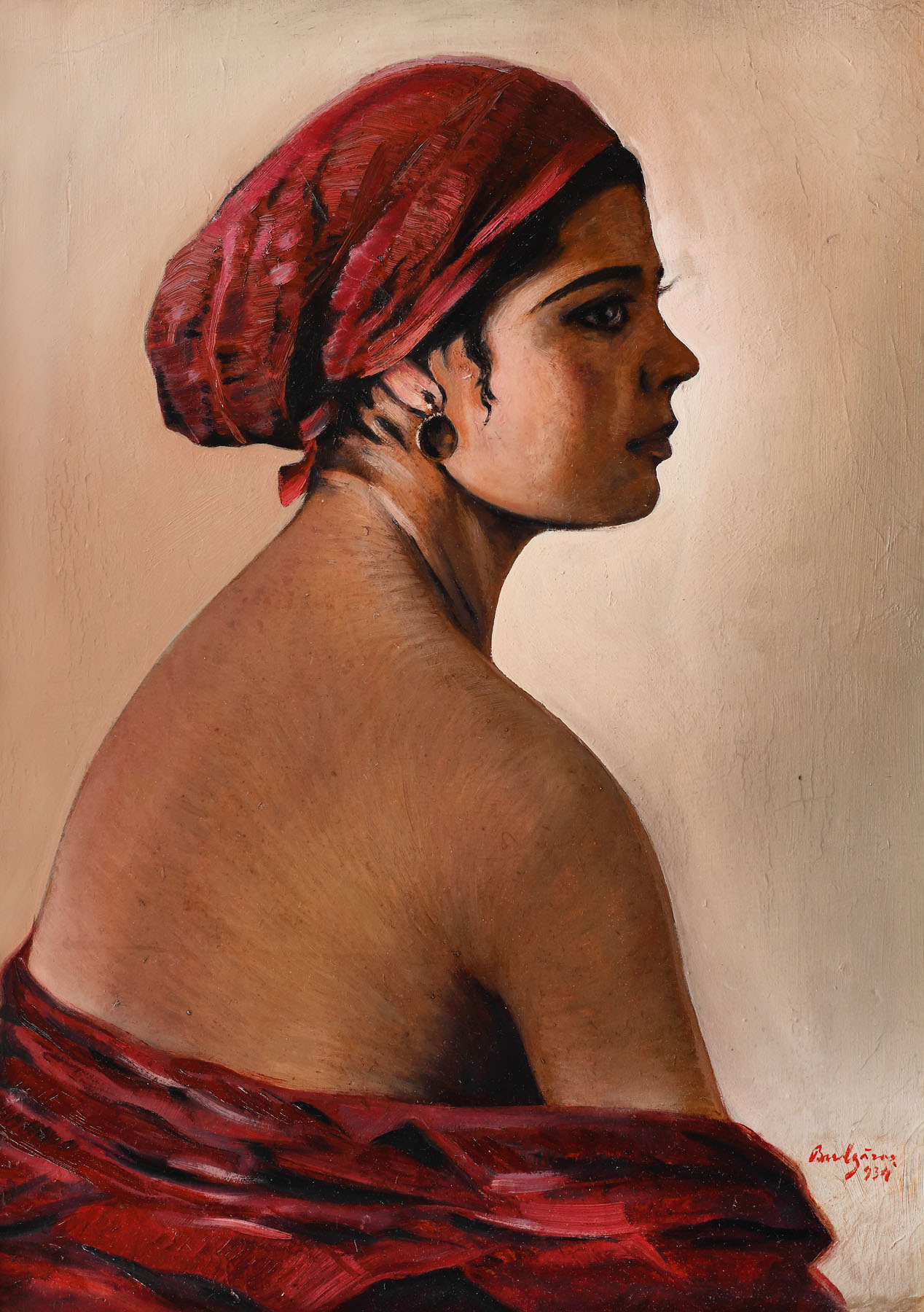 semnat și datat dreapta jos, cu roșu, "Bulgăraș, (1)934”"