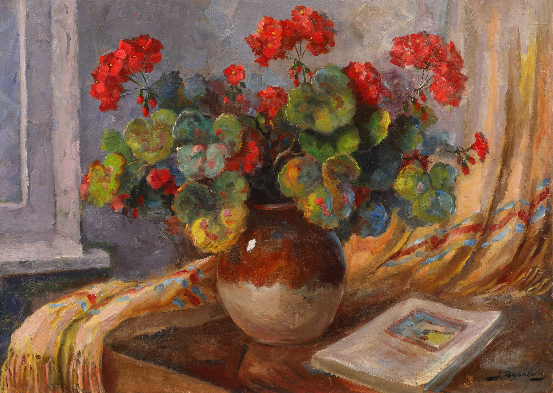 268. Natură statică cu mușcate și carte