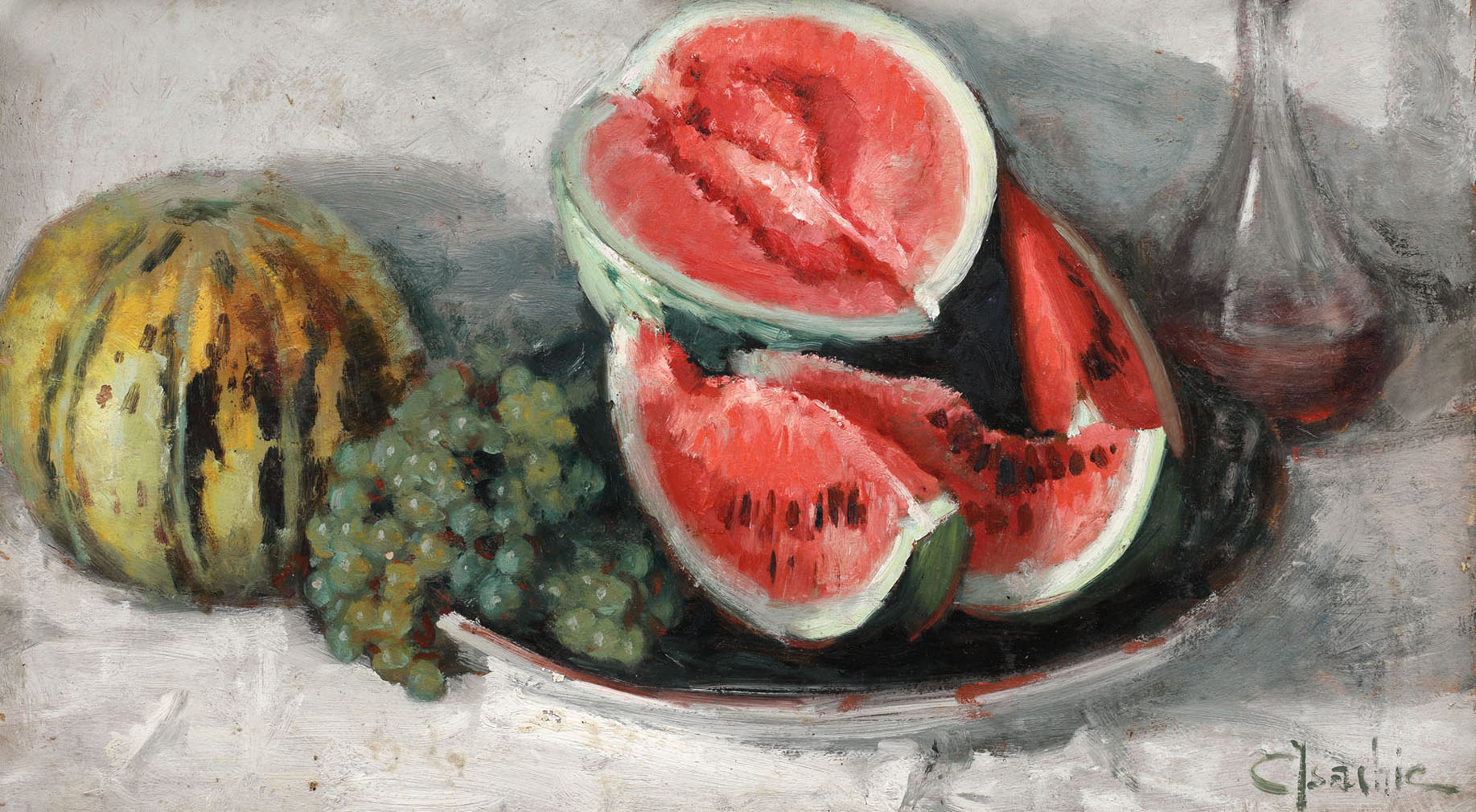 304. Natură statică cu pepeni și struguri