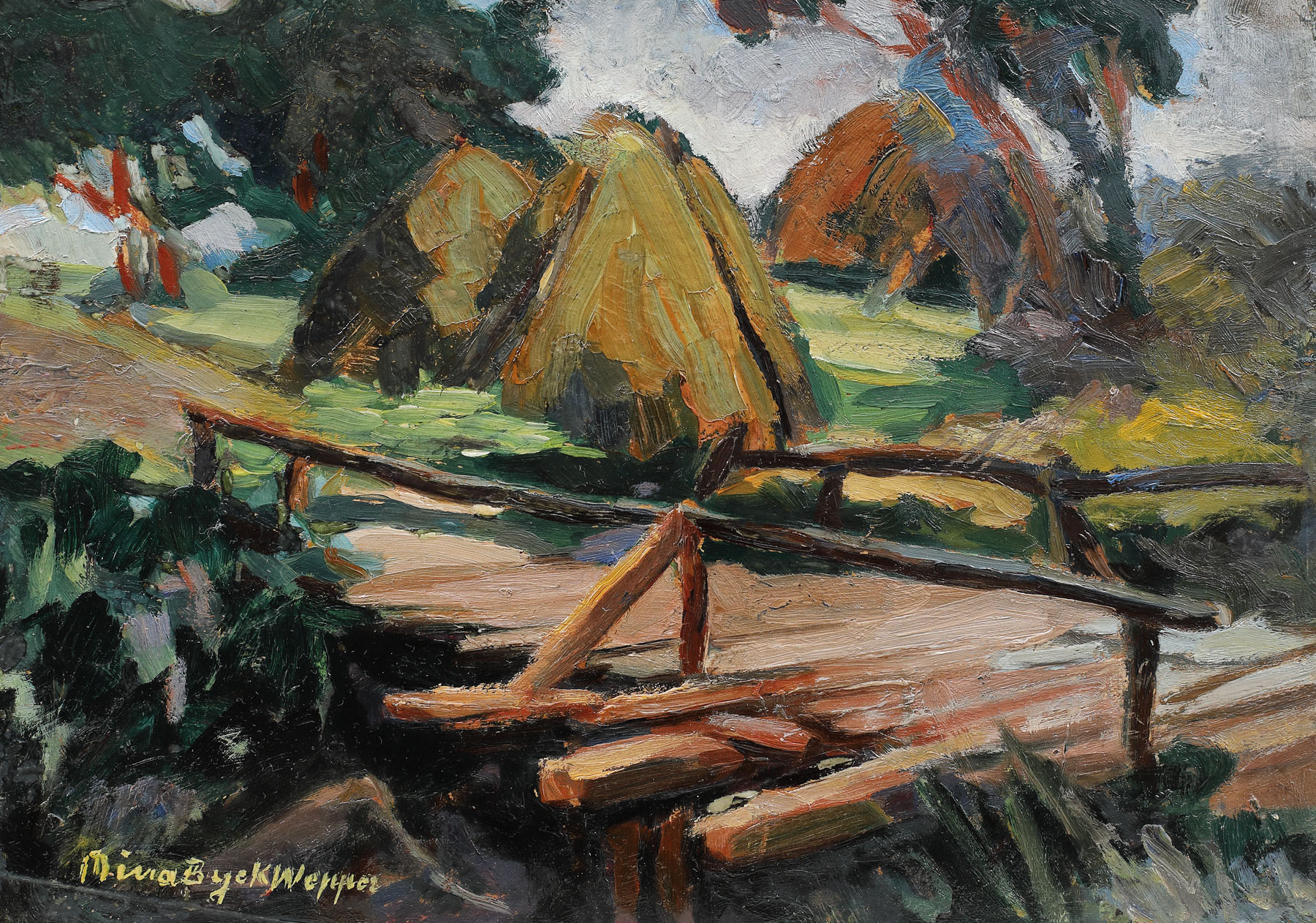 semnat stânga jos, cu galben, "Mina Byck Wepper"