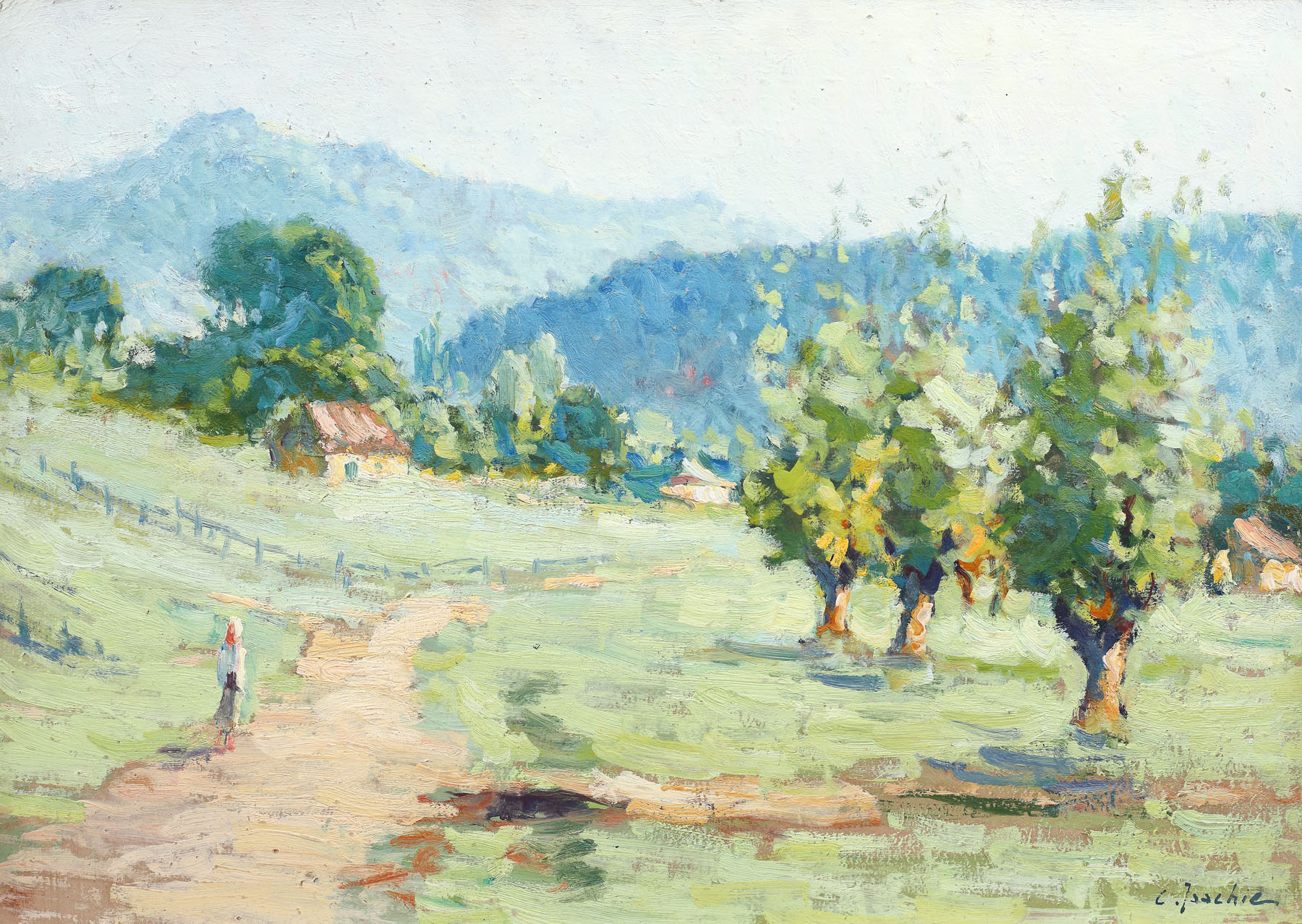 semnat dreapta jos, cu albastru, "C. Isachie"