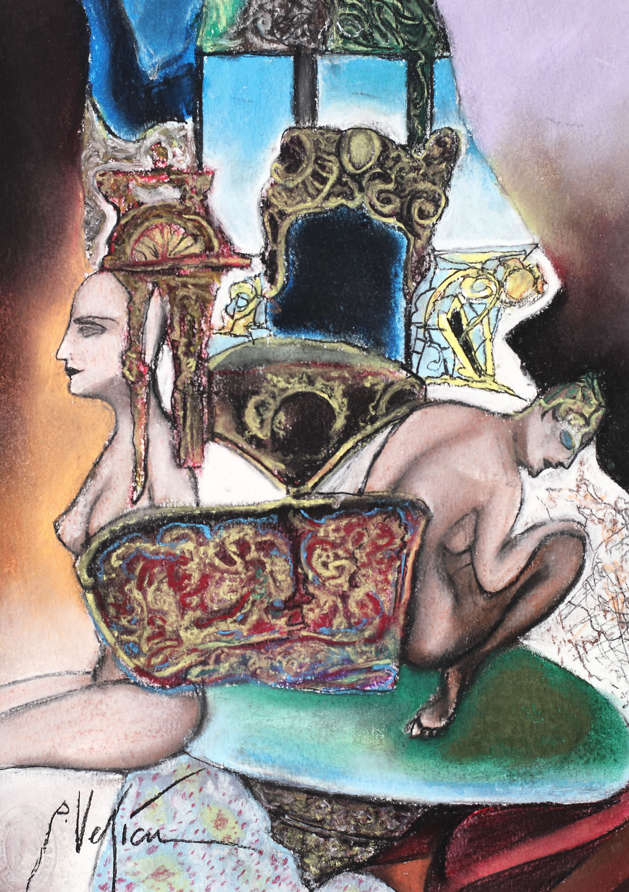 pastel și tuș pe hârtie