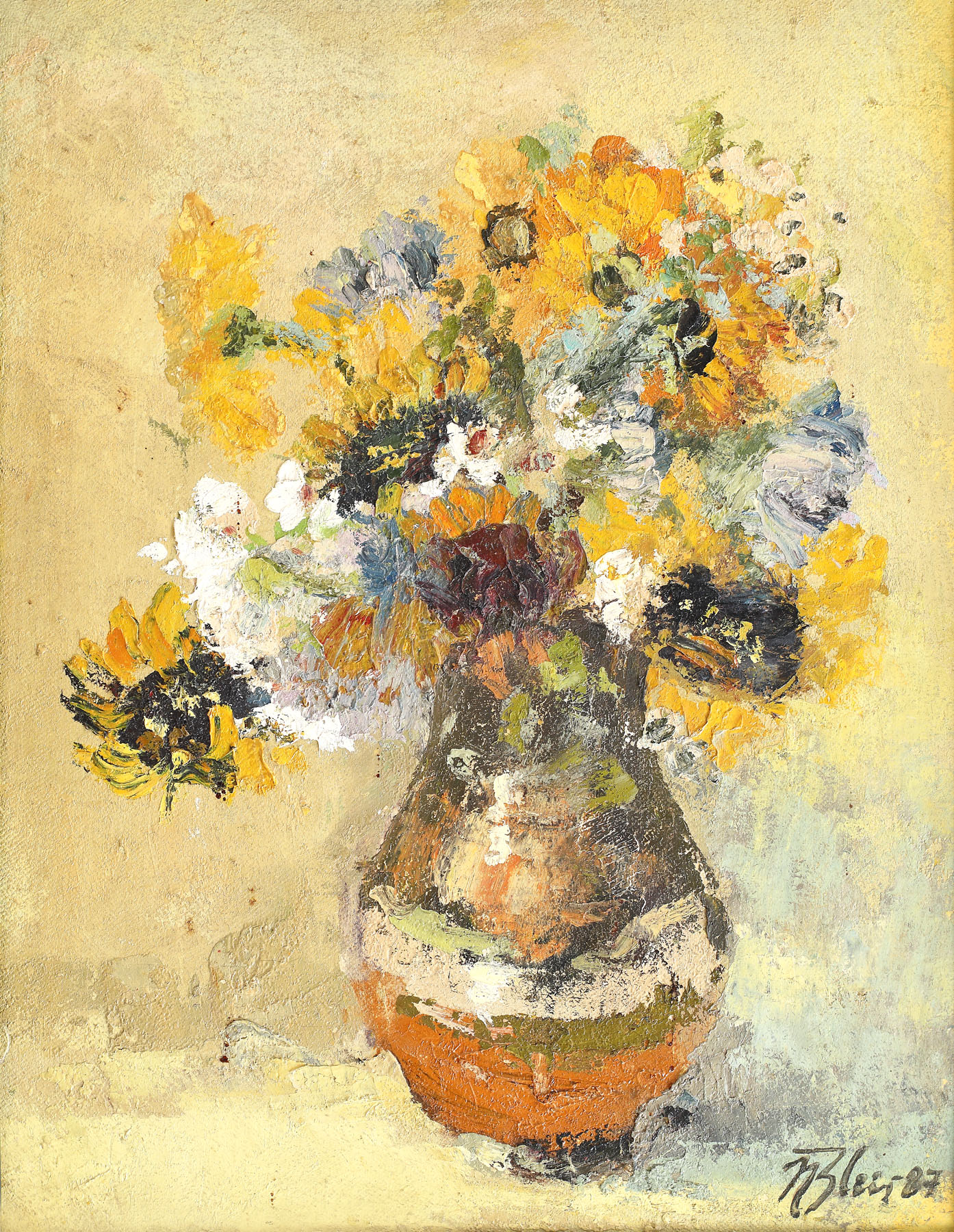 semnat și datat dreapta jos, cu negru, "N. Blei, (19)87"