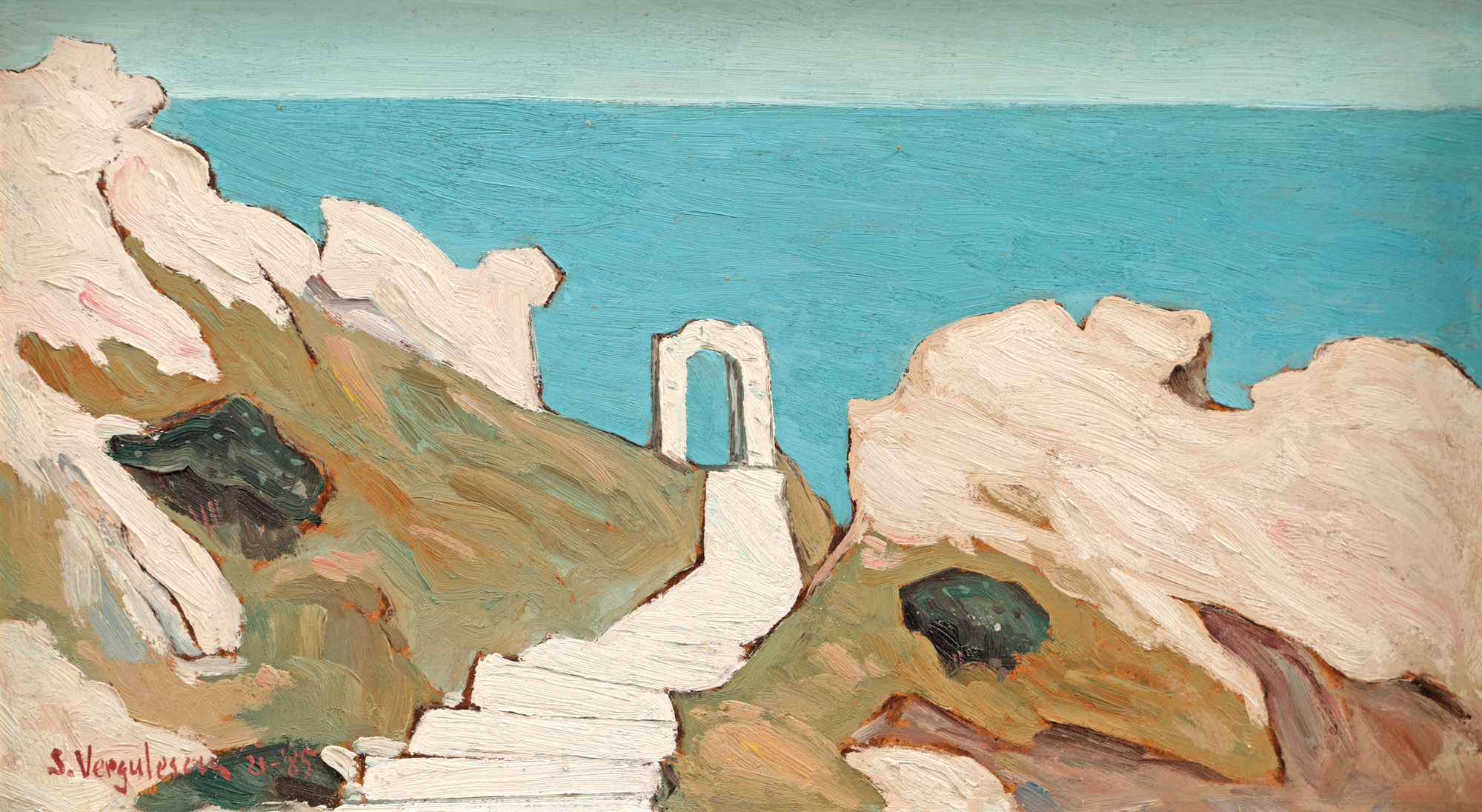 semnat și datat dreapta jos, cu brun, "S. Vergulescu, 1985"