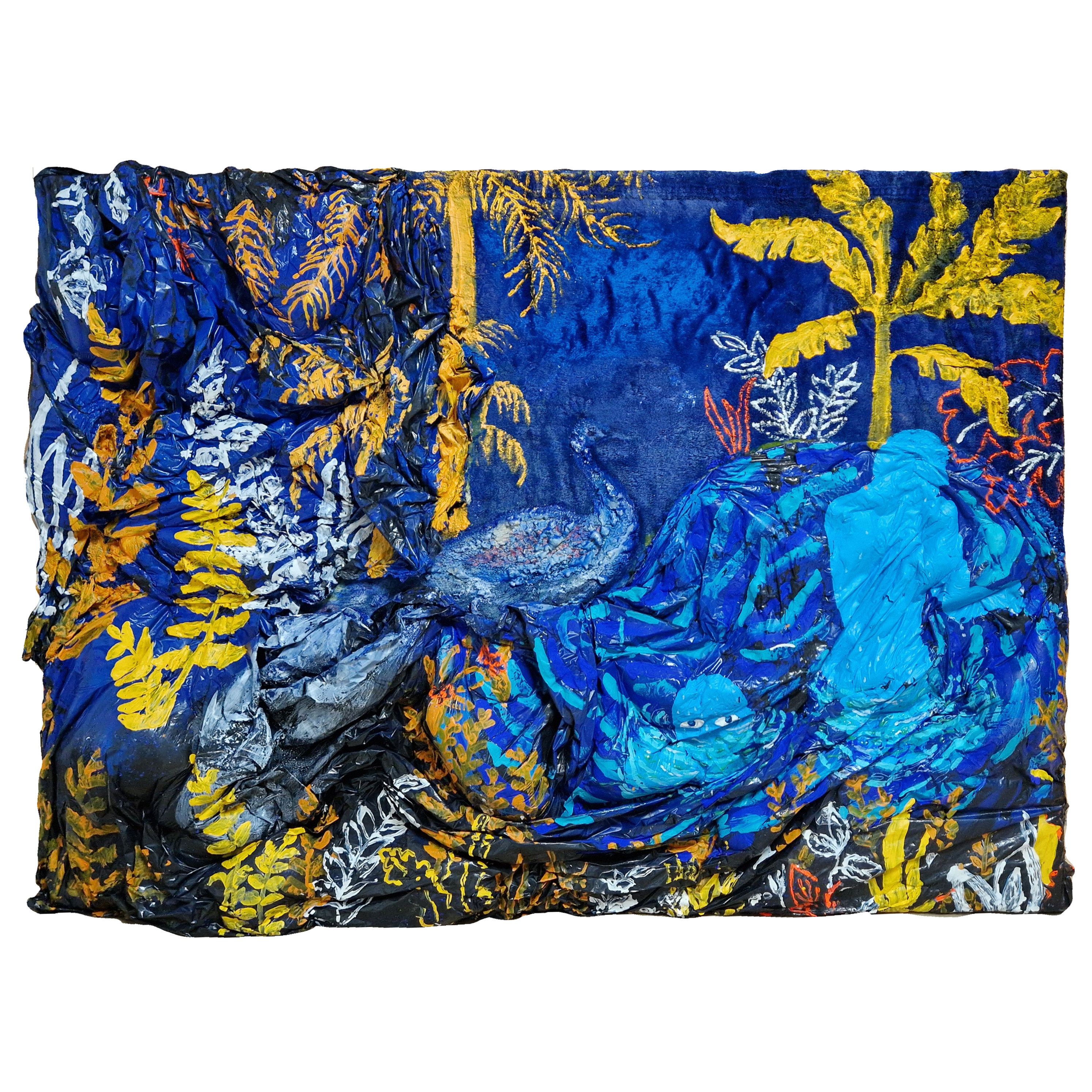 acrilic, colaj de materiale reciclate pe carpetă "Răpirea din Serai"