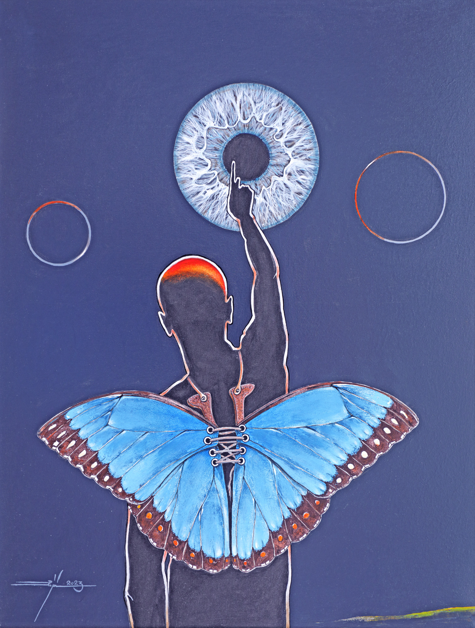 semnat stânga jos, cu gri, ”Puiu, 2023”