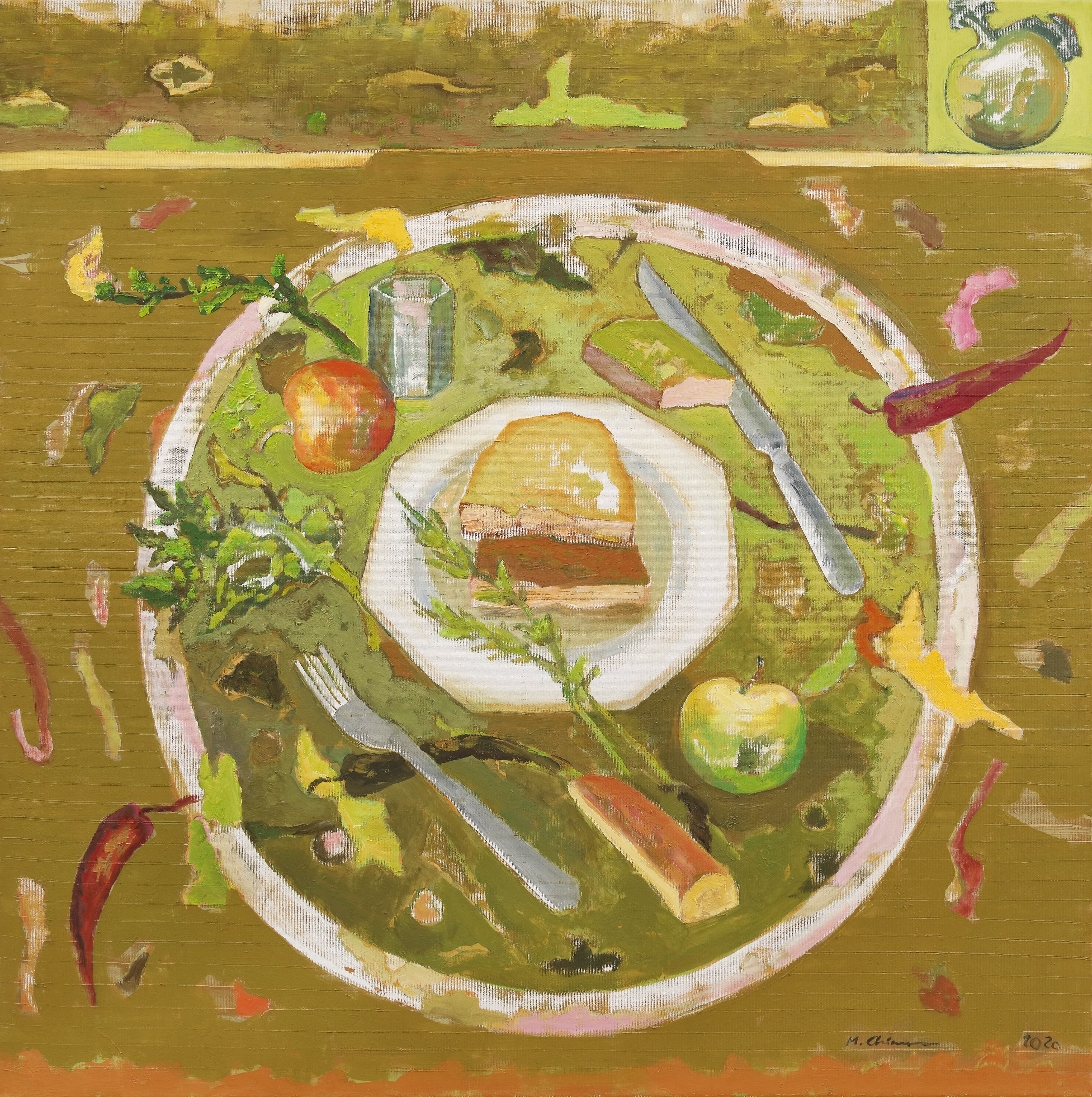 semnat și datat dreapta jos, cu negru, "M. Chiuaru, 2020"